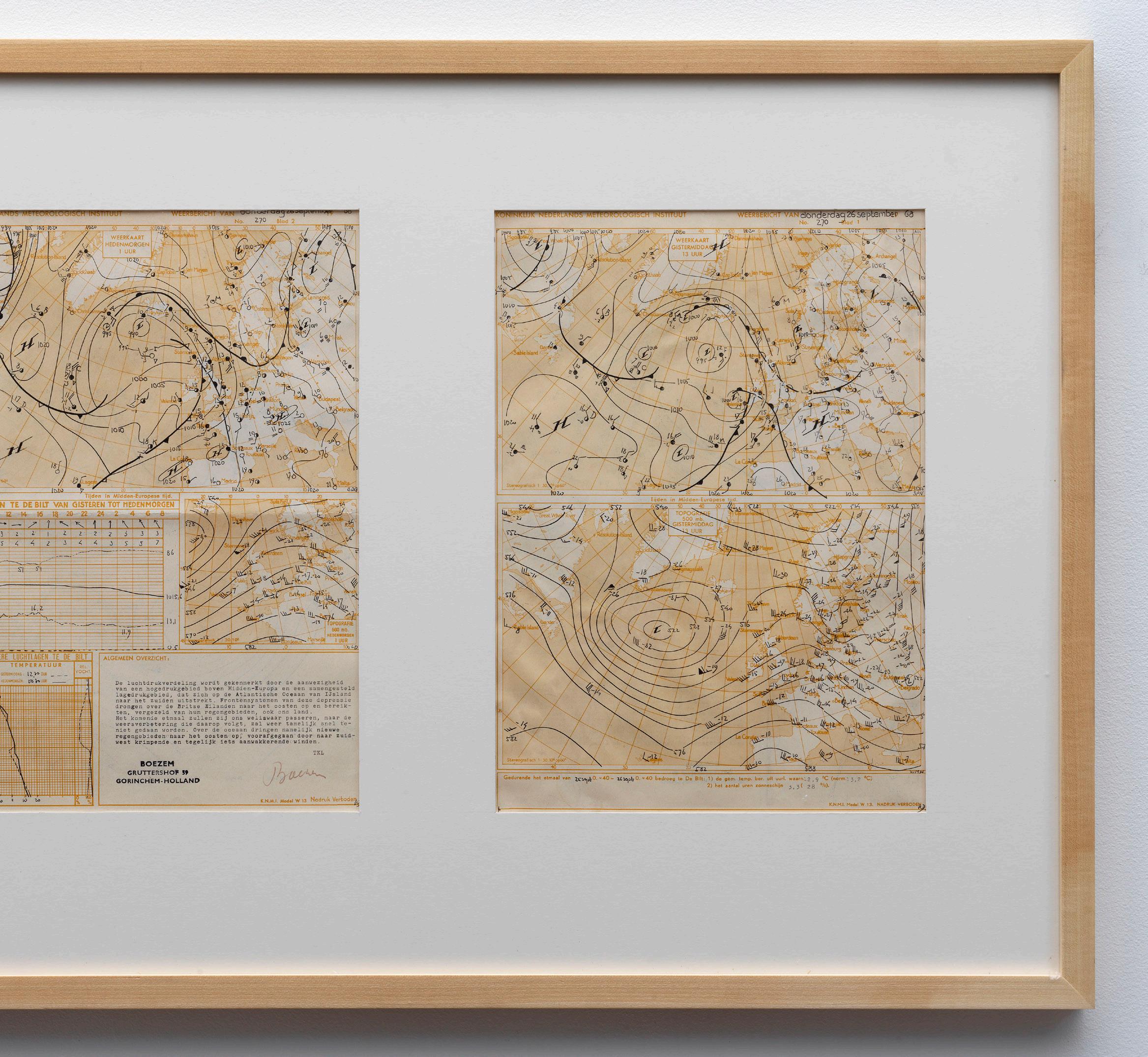 The September 26 Weather Map was later printed on the cover of the Op Losse Schroeven catalogue (1969), and meteorological imagery continued to recur throughout Boezem’s work in subsequent years.