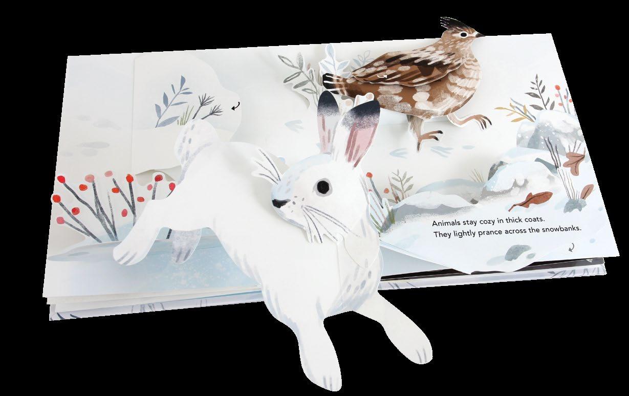 Snowfall quietly blankets the landscape. Critters scurry in search of food, while others hibernate in wait for warmer weather. All seven spreads are packed with unique interactive pop-ups, changing pull-tabs, and fascinating facts within this winter pop-up book.