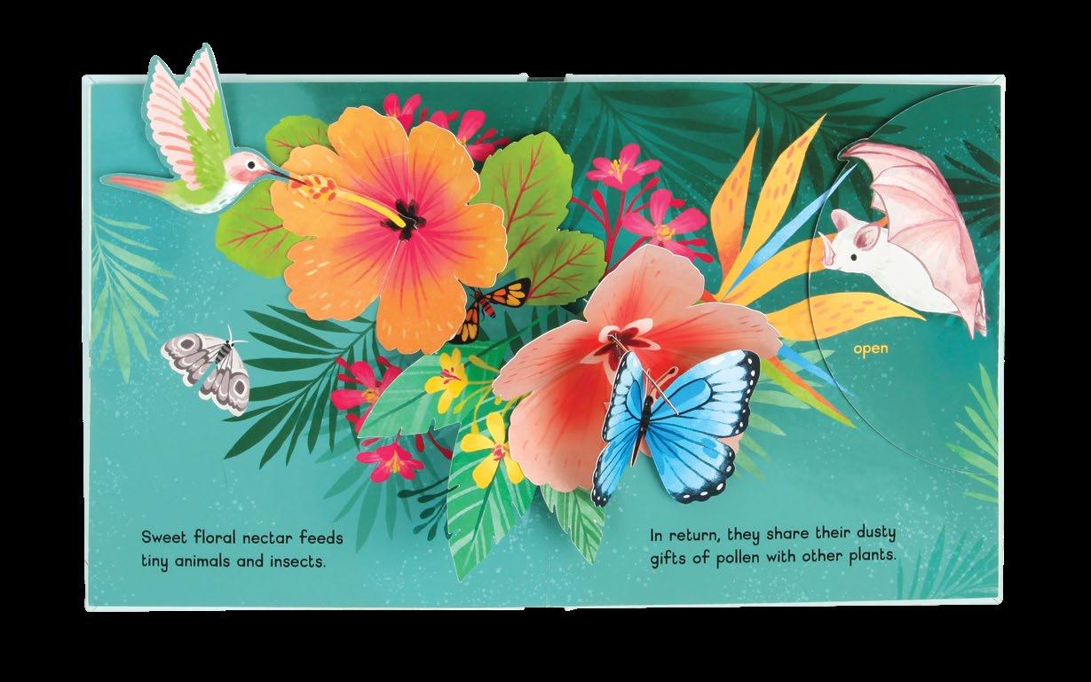 Peek inside this spring-inspired pop-up book and discover how flowers are more than just beautiful; they are critical components of the natural world. Bees buzz, hummingbirds sip, and bats flit amongst the brilliant petals. Seven spreads are filled with unique pop-ups, revealing pull-tabs, and captivating facts.