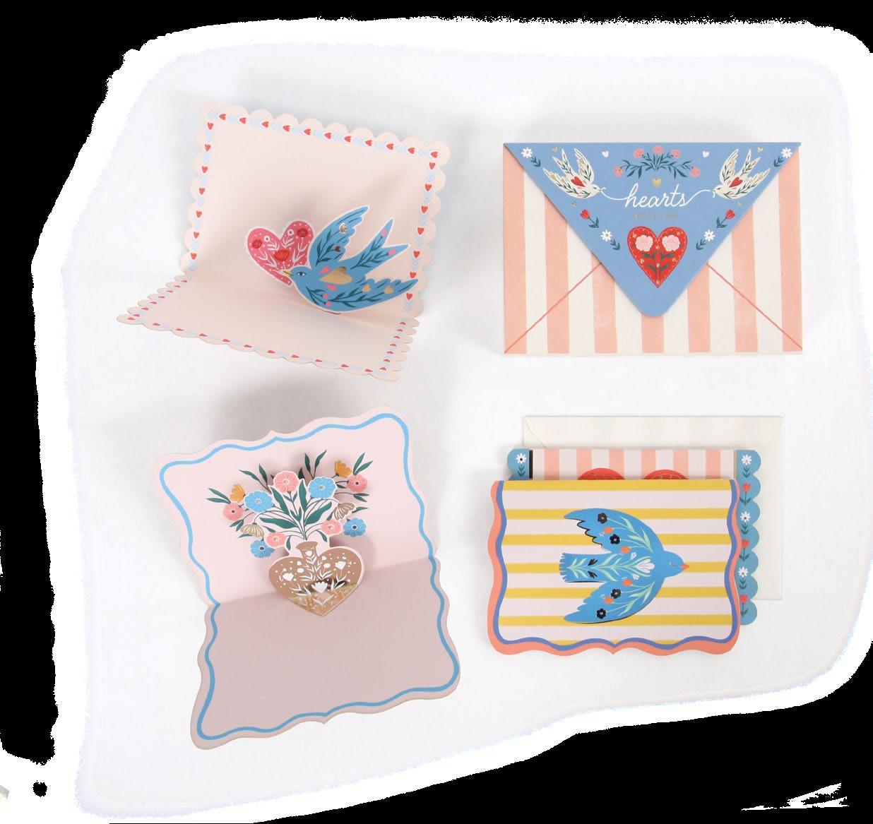 The majority of our cards are packaged in a polyjacket so consumers can easily experience opening our pop-up cards.