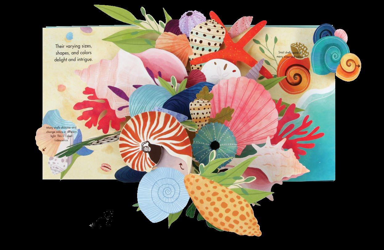 Along summer beaches, shells beckon with their timeless beauty and wonder. They provide protection for many ocean animals, populate colorful coral reefs, and sometimes surprise with a pearl inside! Fabulous interactive features and fun facts abound across seven spreads of this summertime pop-up book.