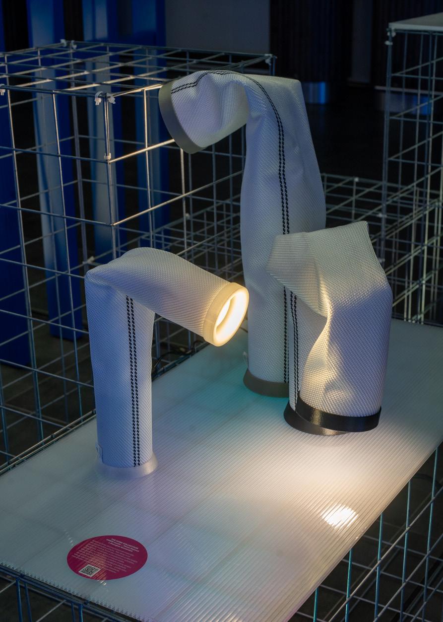Kolekcia HOSE skúma potenciál materiálu ako prostriedok pohybu. Telo lampy tvorí požiarna hadica využitá v novom kontexte, ktorej vlastnosti sme objavili počas experimentovania s rôznymi textíliami a polotovarmi. Podľa toho, kde ju stlačíme a deformujeme, vieme intuitívne meniť smer svietenia a atmosféru priestoru. Požiarna hadica ako materiál vyniká svojou flexibilitou, odolnosťou a dostatočnou tuhosťou, vďaka čomu nie je nutné pridávať ďalšie mechanické komponenty s cieľom zmeny smeru svetla.