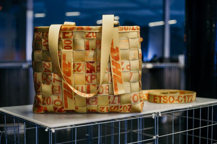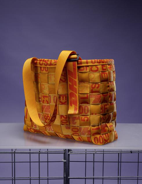 Projekt vznikol ako jedinečné spojenie dizajnu, udržateľnosti a spolupráce. Taška je vyrobená z originálnych, už použitých popruhov DHL, ktoré dostali nový život prepletaním bez ďalších materiálov. Pred šitím boli popruhy dôkladne vyprané. Strojové šitie zabezpečuje pevnosť a funkčnosť.