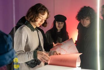 Projekt skúma význam papiera v súčasnom vizuálnom prostredí – ako základného materiálu grafického dizajnu, ale aj ako média s vlastnou hmotnosťou, farbou a štruktúrou. Cieľom bolo ukázať, ako materiál dokáže formovať komunikáciu a meniť vnímanie vizuálneho posolstva. V spolupráci so značkou GF Smith a firmou S Paper študenti pracovali s prémiovým papierom Colorplan, ktorý pretvorili do fyzickej i digitálnej podoby vzorníkov. Tie sa stali nositeľom experimentu aj praktickým nástrojom – prepojením estetiky s funkčnosťou. Výsledná inštalácia pod vedením Matěja Činčeru a Adama Zaňku a jej koncept zdôrazňuje tímovú spoluprácu študentiek Zity Hruškovej a Alexandry Didíkovej. Prezentácia tak nie je len ukážkou výsledkov semestrálnej práce, ale aj pripomenutím, že grafický dizajn má svojbytný umelecký rozmer a zaslúži si byť vnímaný ako autonómna kultúrna disciplína.
