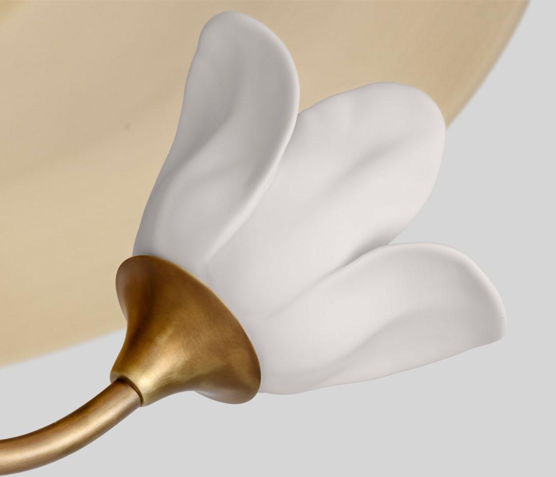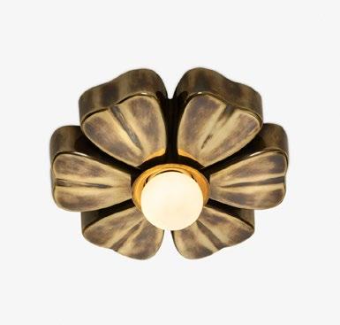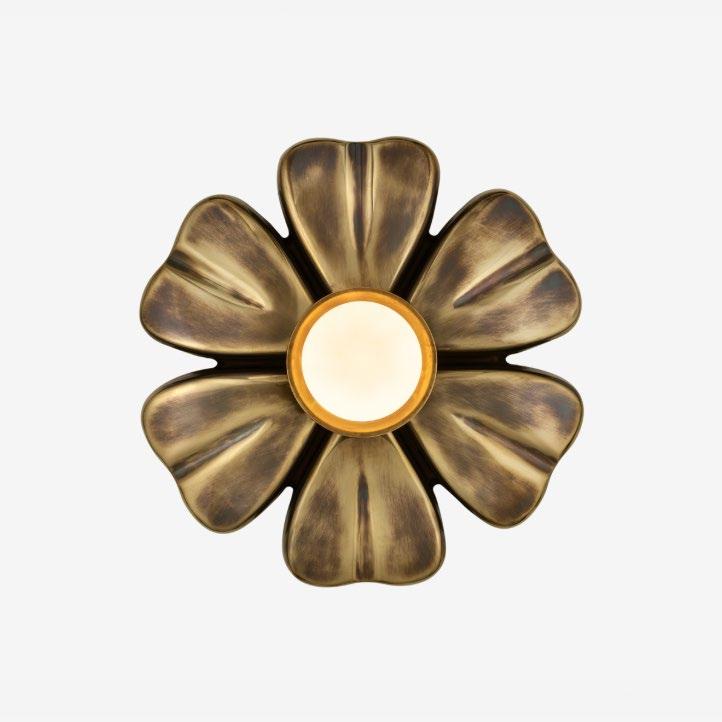 A cast brass floral mini-flushmount, perfect for lining a hallway or flanking a mirror in a charming, playful powder room. For more details, click here.