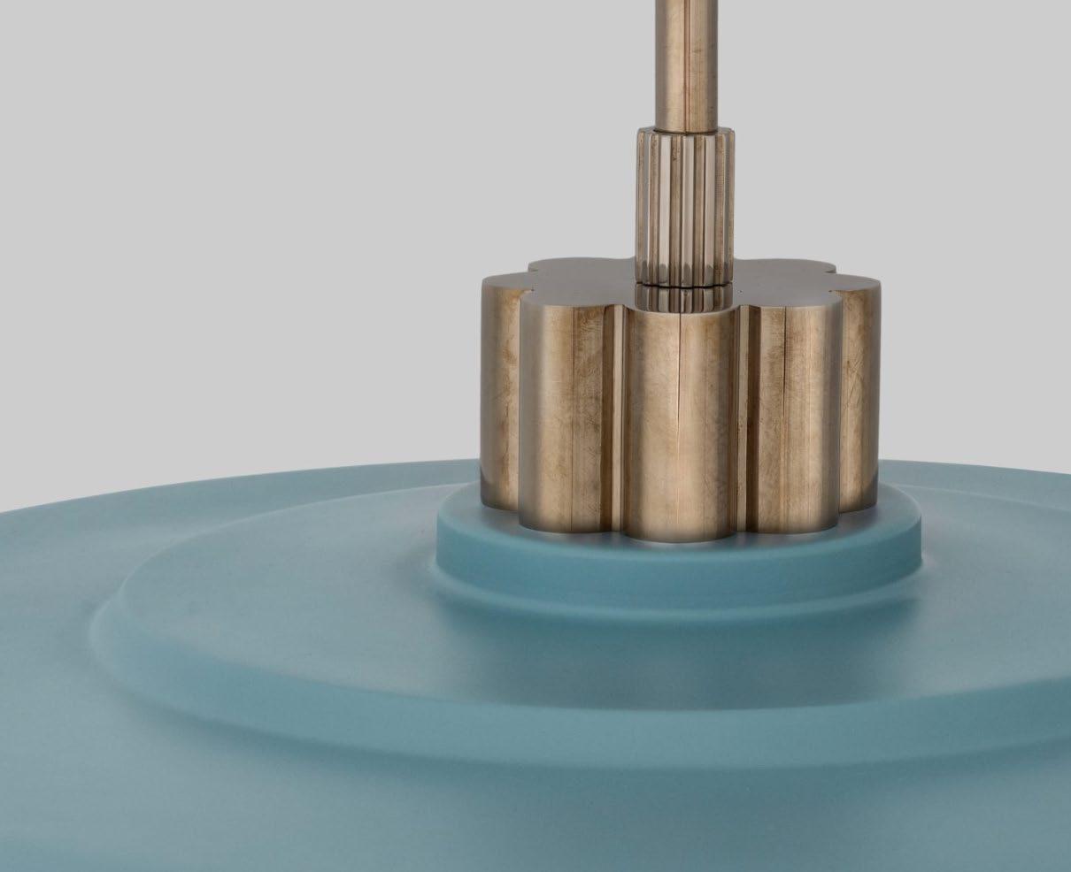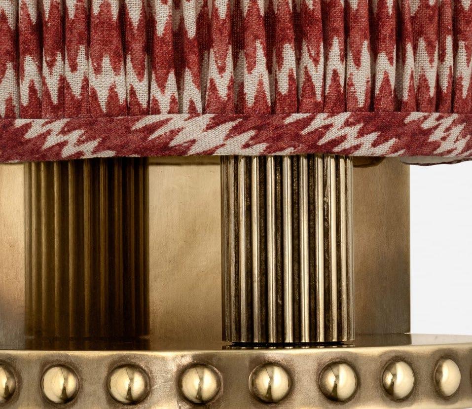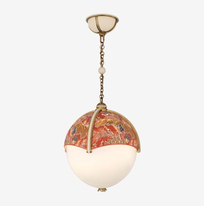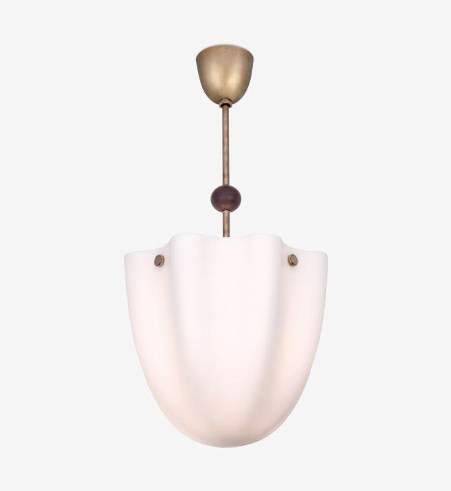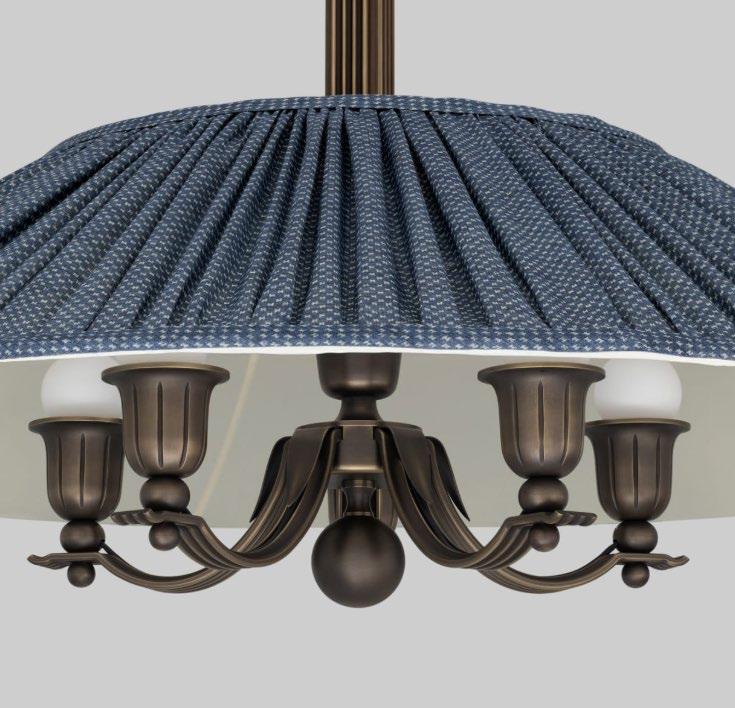 A softly pleated, oversized coolie-style shade paired with Swedish-inspired details creates a striking focal point—perfect for dining rooms, layered interiors, and spaces rich in pattern and texture. For more details, click here.