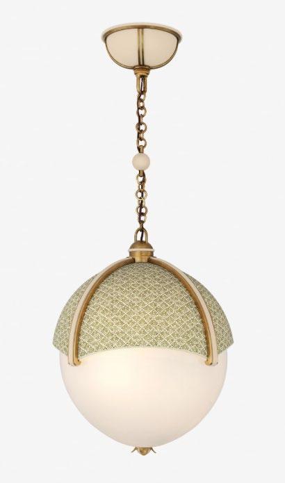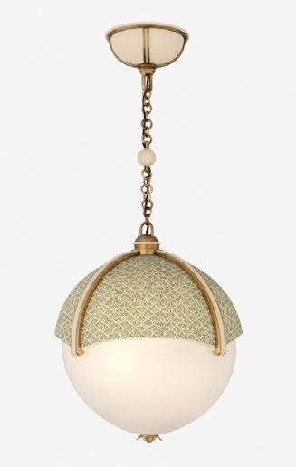 An eye-catching globe pendant that combines a lower half of softly diffused glass capped by a paneled fabric upper half with a contrasting ribbed frame. For more details, click here.