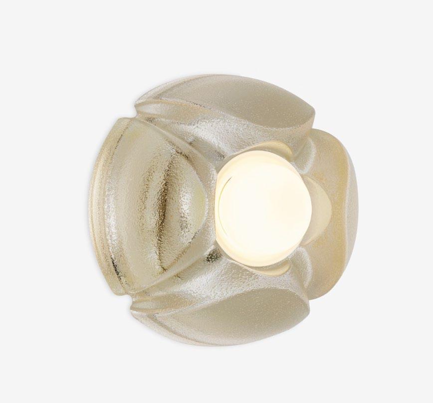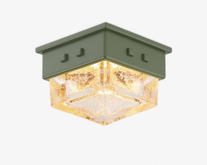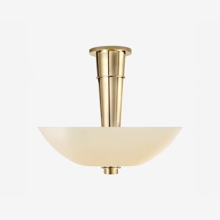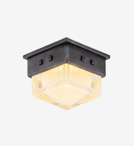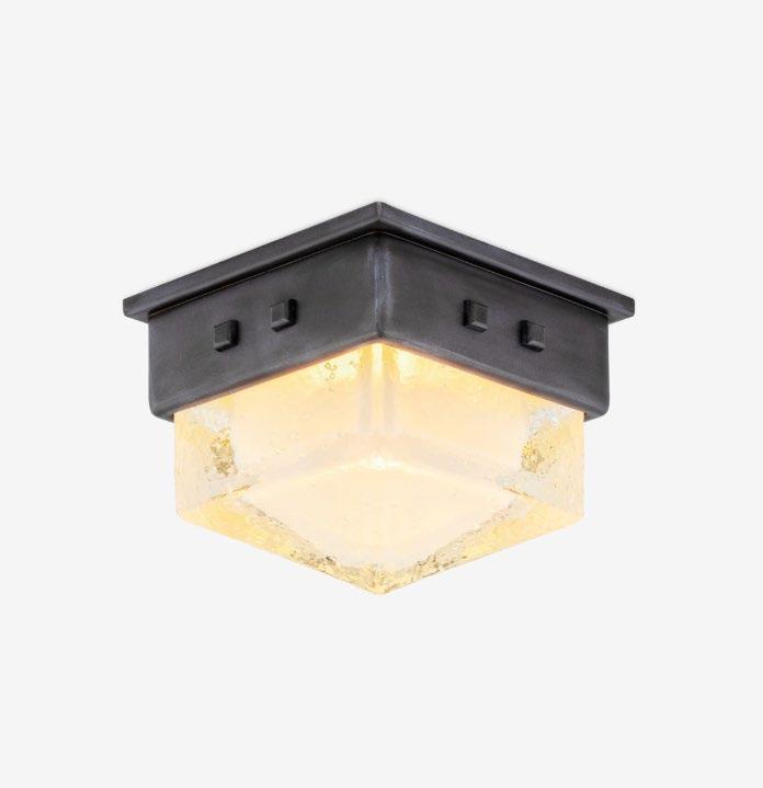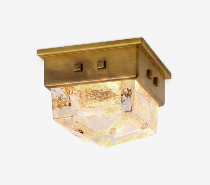A mini-flushmount that features an inverted pyramid of thick cast glass nestled into a studded brass cap. For more details, click here.