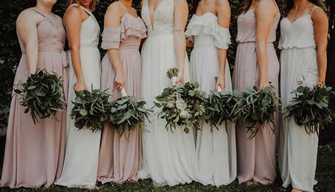 Matching bridal party attire is trending away from strict uniformity in color and pattern in favor of coordinated palettes. Think varying shades of a single color or complementary styles or fabrics, which allows for individual expression, yet still feels intentional.
