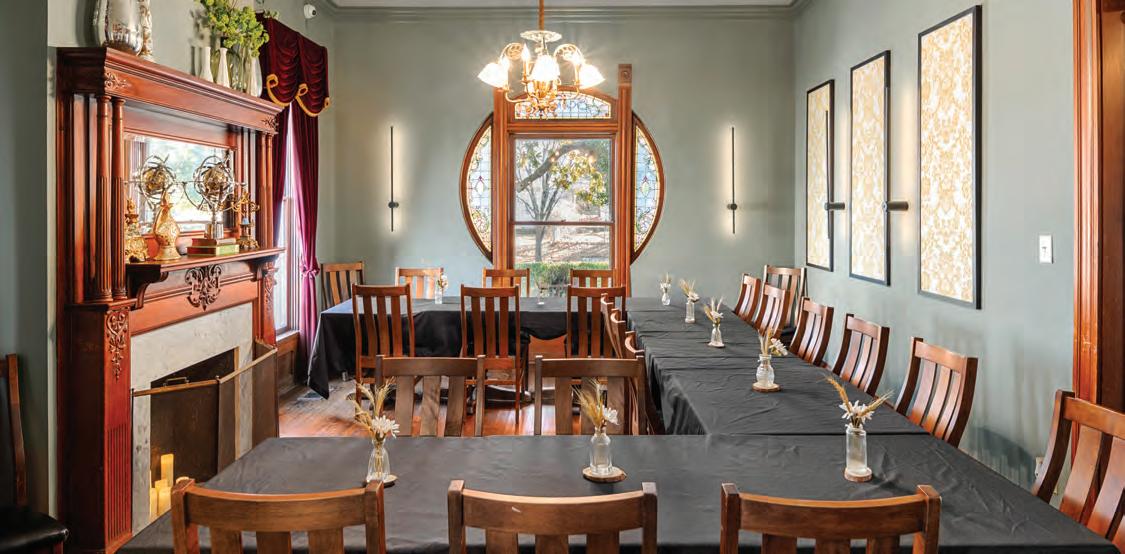 Located in a 137-year-old home, Magnolia Social House blends original architectural details with carefully considered updates. Two large magnolia trees frame the entrance, while inside, a collection of distinct rooms creates a house-like atmosphere that feels comfortable rather than commercial. The entire downstairs and much of the upstairs are available for rehearsal dinners, receptions, and showers, while an upstairs bridal suite provides a dedicated space for brides and bridesmaids to gather and get ready away from the flow of the event below.