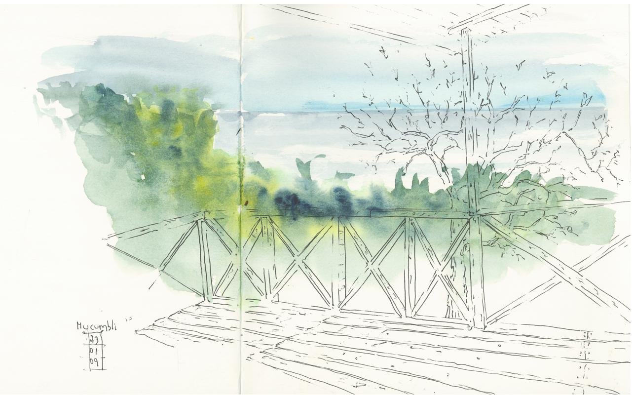 Olá colega. Também é professor? - Claro. E prossegue - sou um preguiçoso, em tempos fazia diários gráficos. Agora, nada. Parabéns. - Obrigado, são só riscos. É para sentir o agora e reviver no futuro.