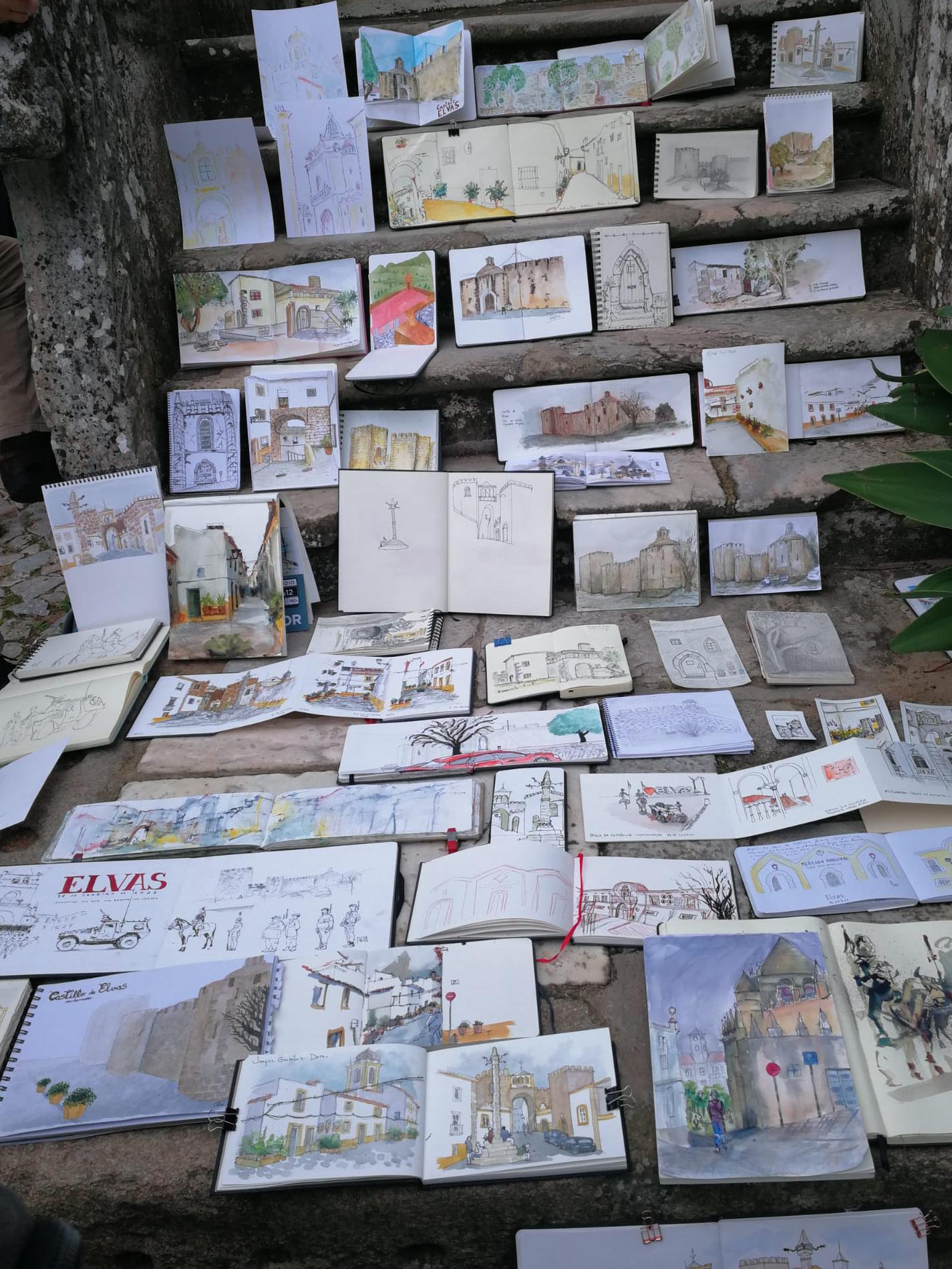 telo Branco, Badajoz, Covilhã, se reuniram em Elvas para desenhar. Após a apresentação feita pelos três anfitriões, com a sugestão de locais a desenhar, os participantes espalharam-se e espalharam a alegria do desenho pela zona antiga de Elvas.