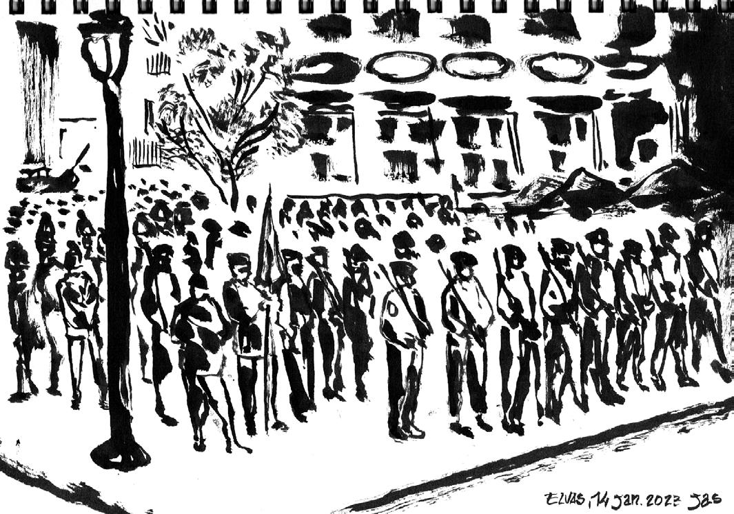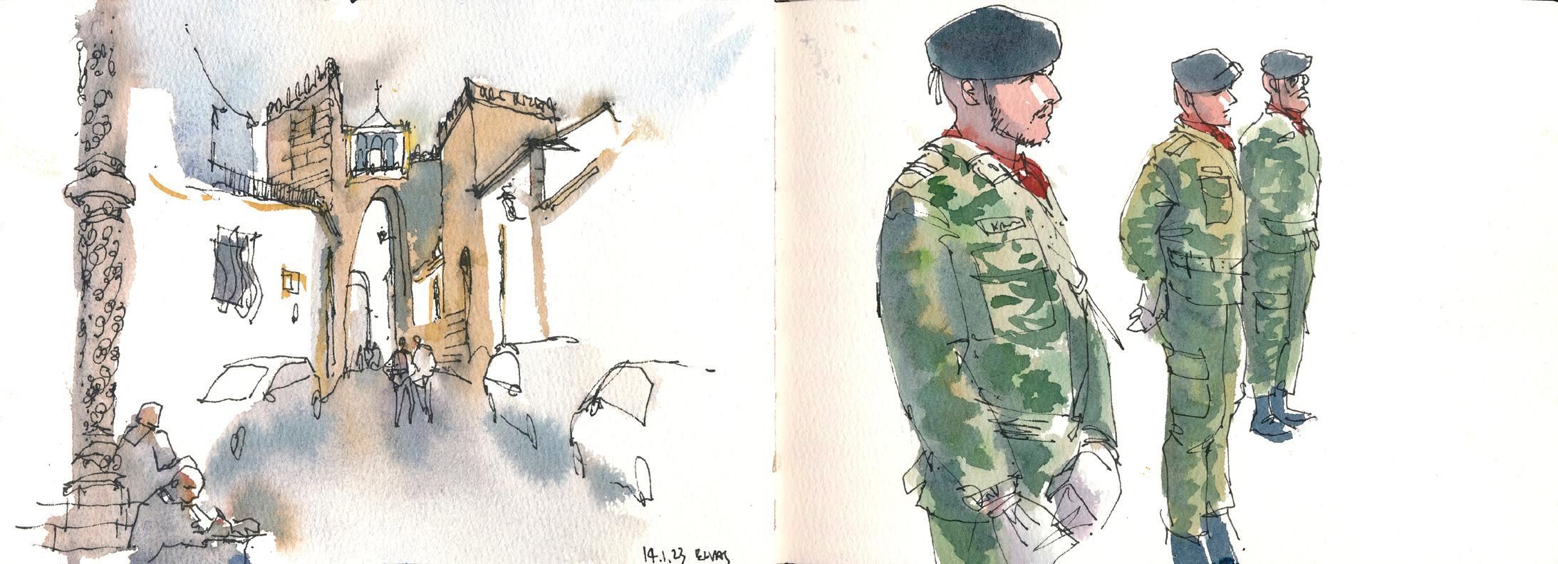 No passado sábado, 14 de janeiro, Elvas viveu o seu feriado municipal, correspondente aos 364 anos da Batalha das Linhas de Elvas. Um dos pontos altos das comemorações foram as cerimónias militares, com a presença de forças em parada. Este foi um dos aspetos considerados no encontro internacional que, durante essa manhã, reuniu cerca de 70 sketchers por-