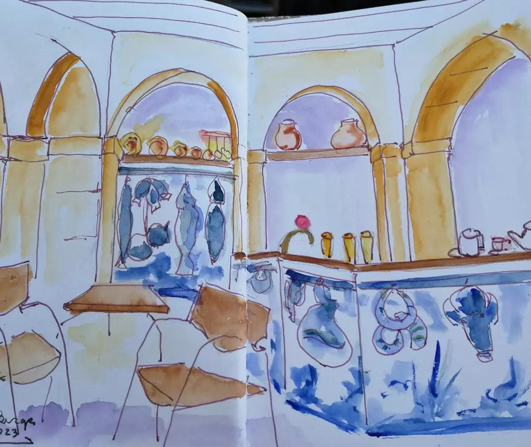 vam ausentes porque ainda acompanhavam o ceramista. A nós juntou-se um casal de sketchers espanhóis em passagem por Lisboa