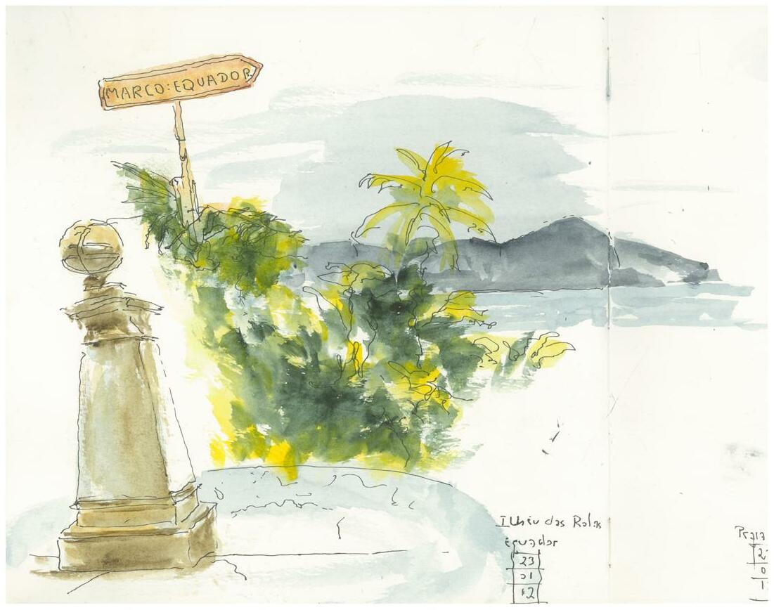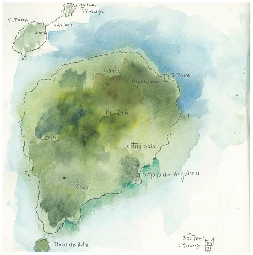 Chegamos ao ilhéu das Rolas onde iniciamos uma caminhada para o marco do Equador. No regresso a chuva é torrencial. Paramos na Boca do Inferno e visitamos a roça Água Izé onde habita agora a FACA - Fabrica das Artes, Ambiente e Cidadania Ativa. É tempo de irmos para a ilha do Príncipe. Santo António é um conjunto desordenado de construções em ruínas e outras de madeira ao estilo local. Vestígios da era colonial destruídos pelo tempo e em estado de puro abandono. A igreja, de Nossa senhora da Conceição, é linda e está a ser restaurada. Avançamos pela ilha, em picadas e caminhos por entre a cerrada vegetação tropical, cruzando aqui e ali pequenas comunidades locais. No Príncipe há ainda menos de tudo. Também o oposto.