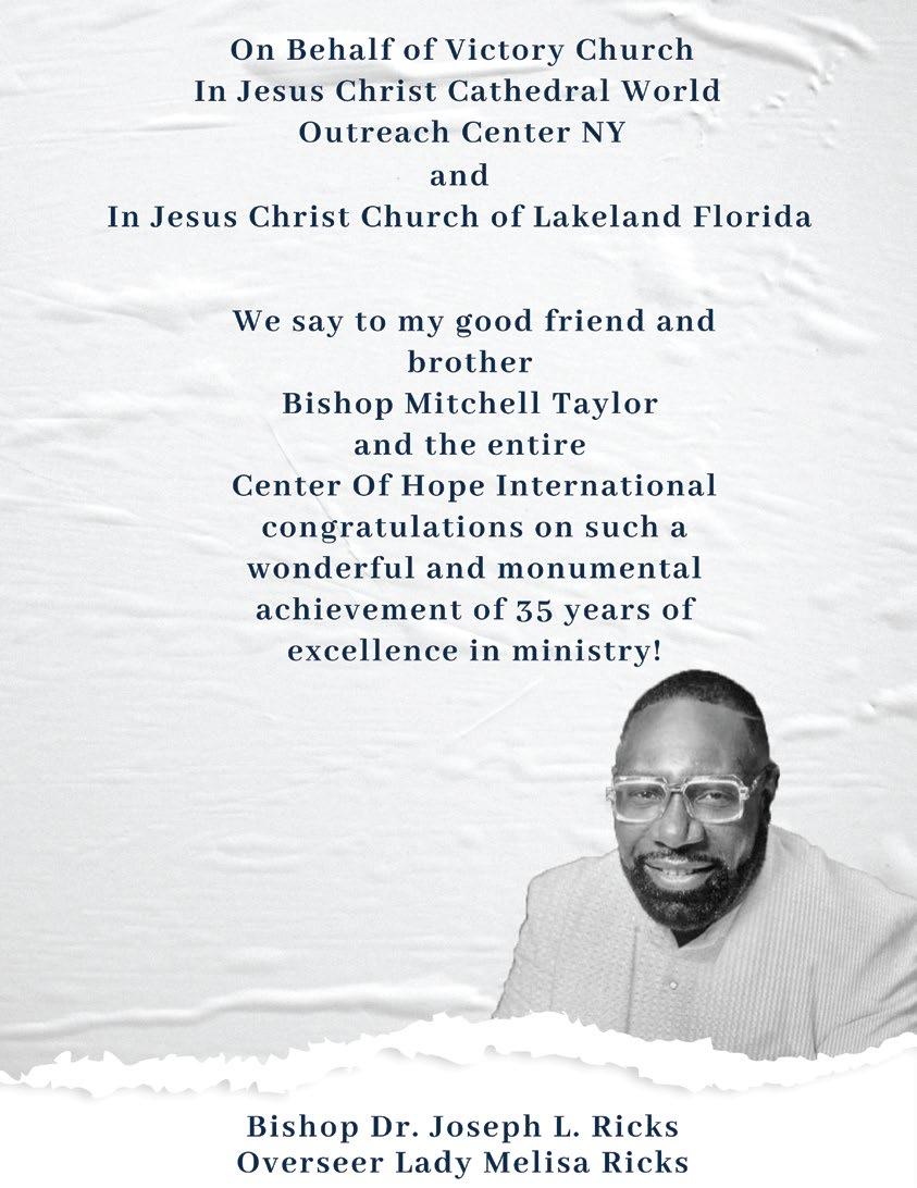 Years of Pastoral Excellence. Thank you for the tremendous work that you do.