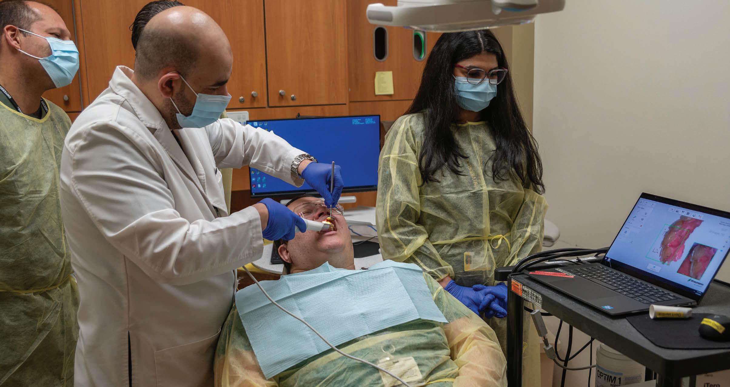 Oral and Maxillofacial Surgery and Prosthodontics have been using digitally guided surgeries to remove tumors, place implants and rehabilitate patients’ function. Prosthodontics and Periodontics have been designing implants, dentures and crowns, while AEGD worked with University of Rochester experts using digital technology and artificial intelligence (AI) to effectively screen and diagnose cavities.