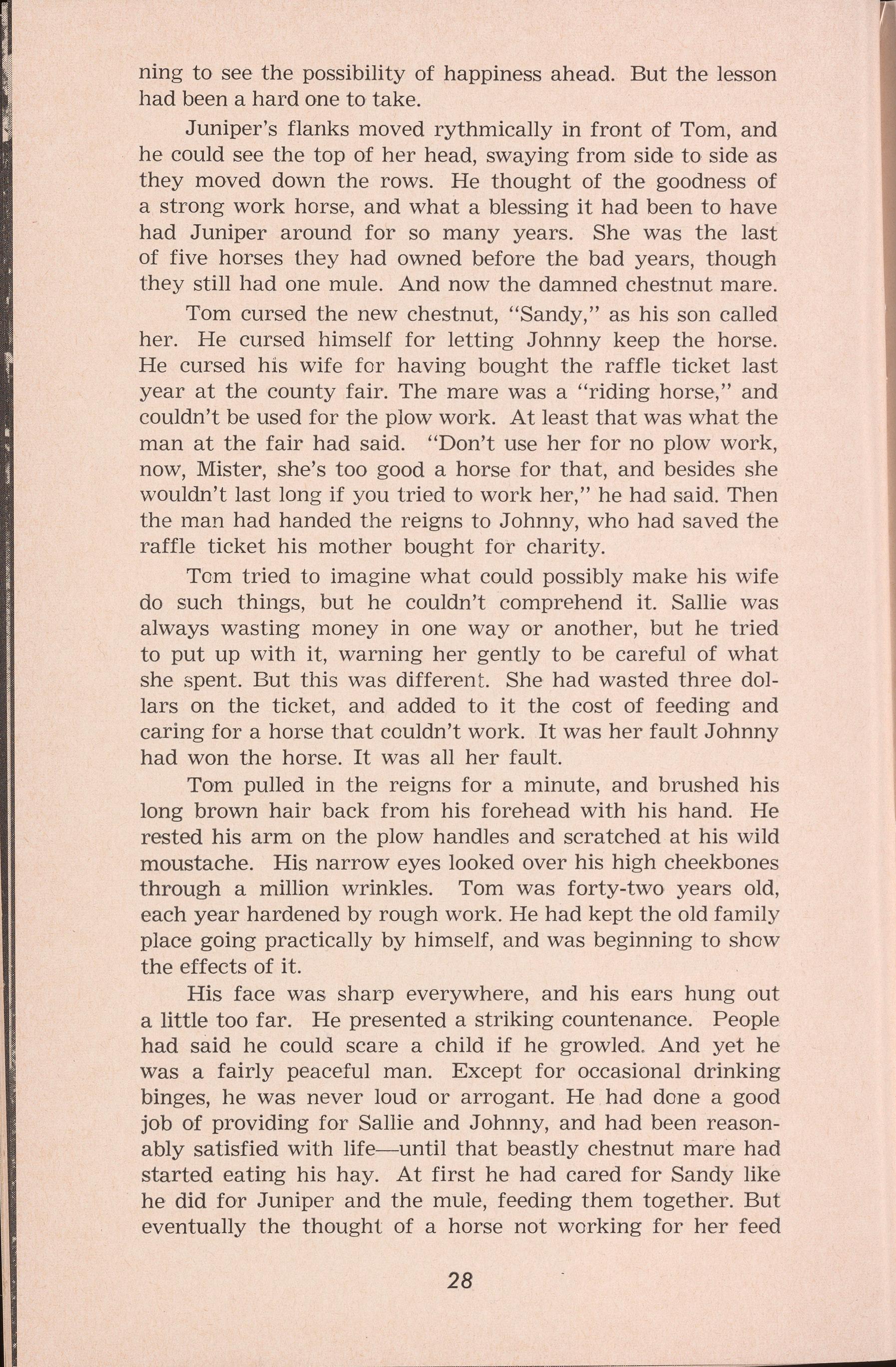 The last time I saw him he was quite sick, and I remember now that his smile was gone. Aunt Bessie, glorying in her powt?-r at that time, ordered him this way and that, and he obeyed like a blind puppy. ·I had wanted to tell him to snap out of it and be my friend again, but being young, I said nothing and believed that he had suddenly become an adult. This saddened me a great deal, losing such a friend, but I had the feeling that he would come back. He did not; I never saw him again.