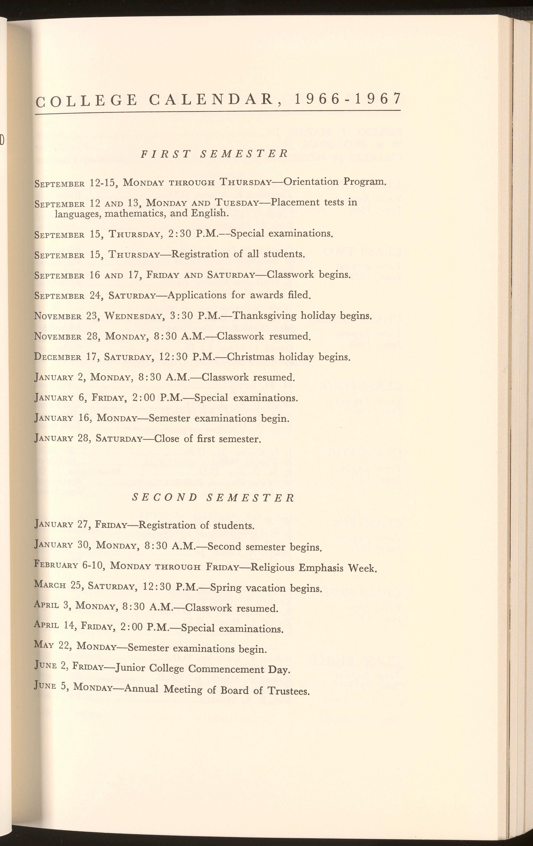 ROSTER OF THE JUNIOR COLLEGE 1965-1966