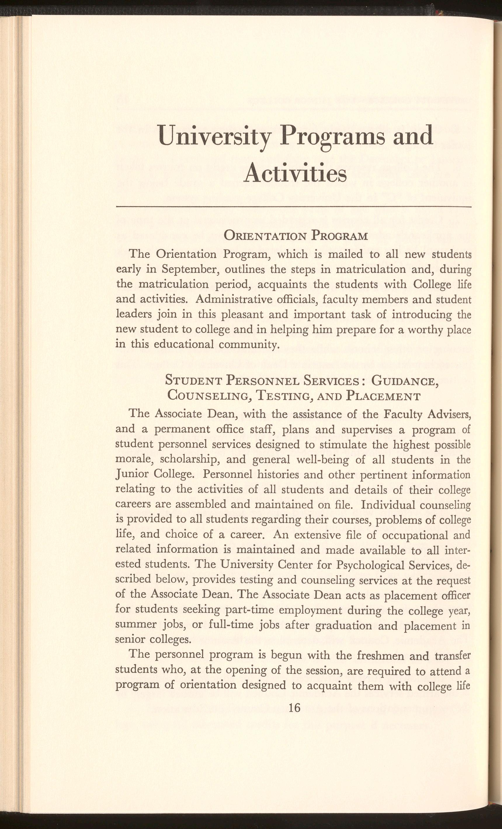 1. Students who want two years of pre-business and pre-professional liberal arts work. These students may continue work toward a baccalaureate degree in the evening program of Uni-