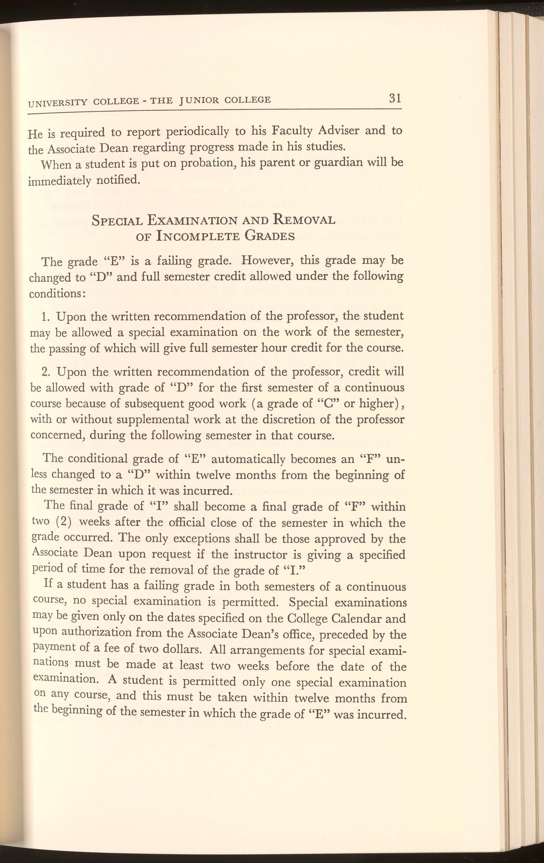 At least thirty semester hours, including the work of the second year, must be completed in University College.