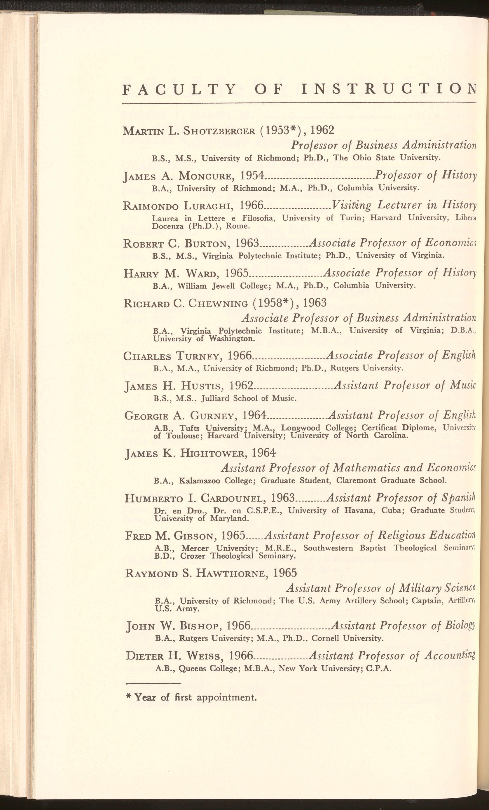 JAMES A. MONCURE, 1954.................................... Professor of History