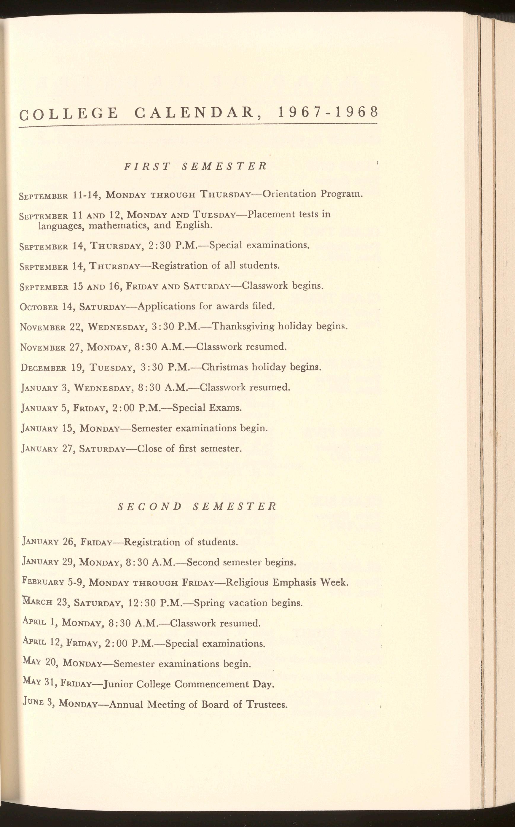 The Orientation Program, which is mailed early in September to all new students, outlines the steps in matriculation. It is required that all students report promptly at the specified time on September 11 and attend all meetings on this program. To miss these meetings places a student under a decided handicap.