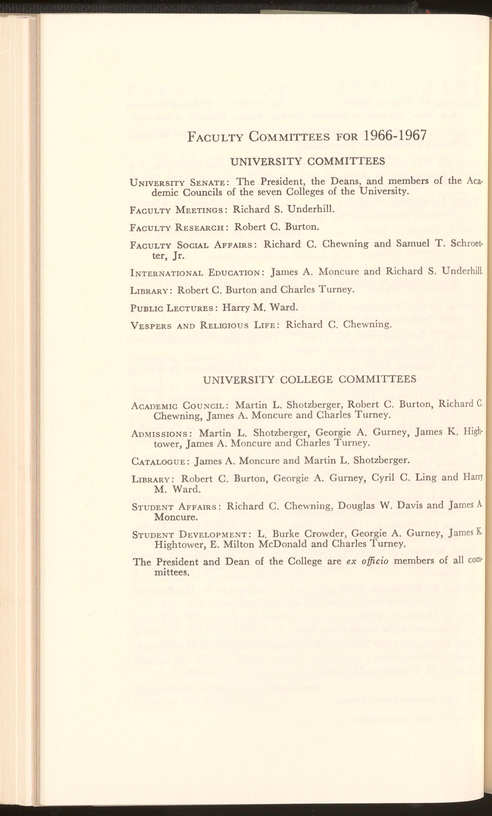 FACULTY COMMITTEES FOR 1966-1967