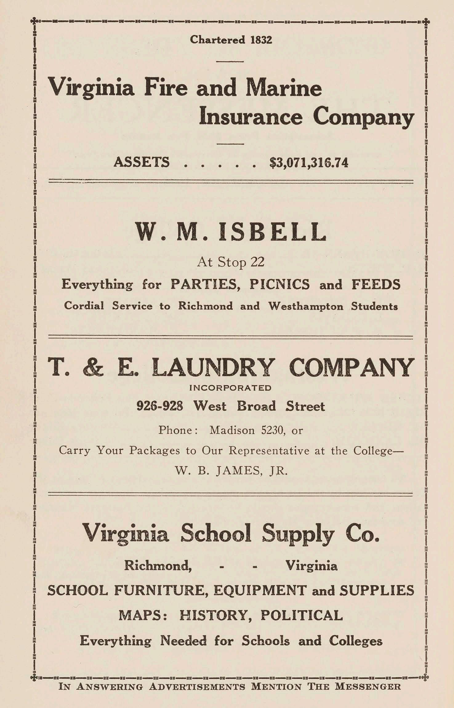 Richmond College for Men is an old and well-endowed College of Liberal Arts, which is recognized everywhere as a Standard American College. Its degrees are accepted at face value in the j great graduate and technical schools of America. Its alumni are • so widely scattered through the nation that the new graduate immediately joins a large and friendly group of men holding positions of power and influence. The College occupies modern and well-equipped buildings, on a beautiful campus of 150 acres in the western suburbs of Richmond.