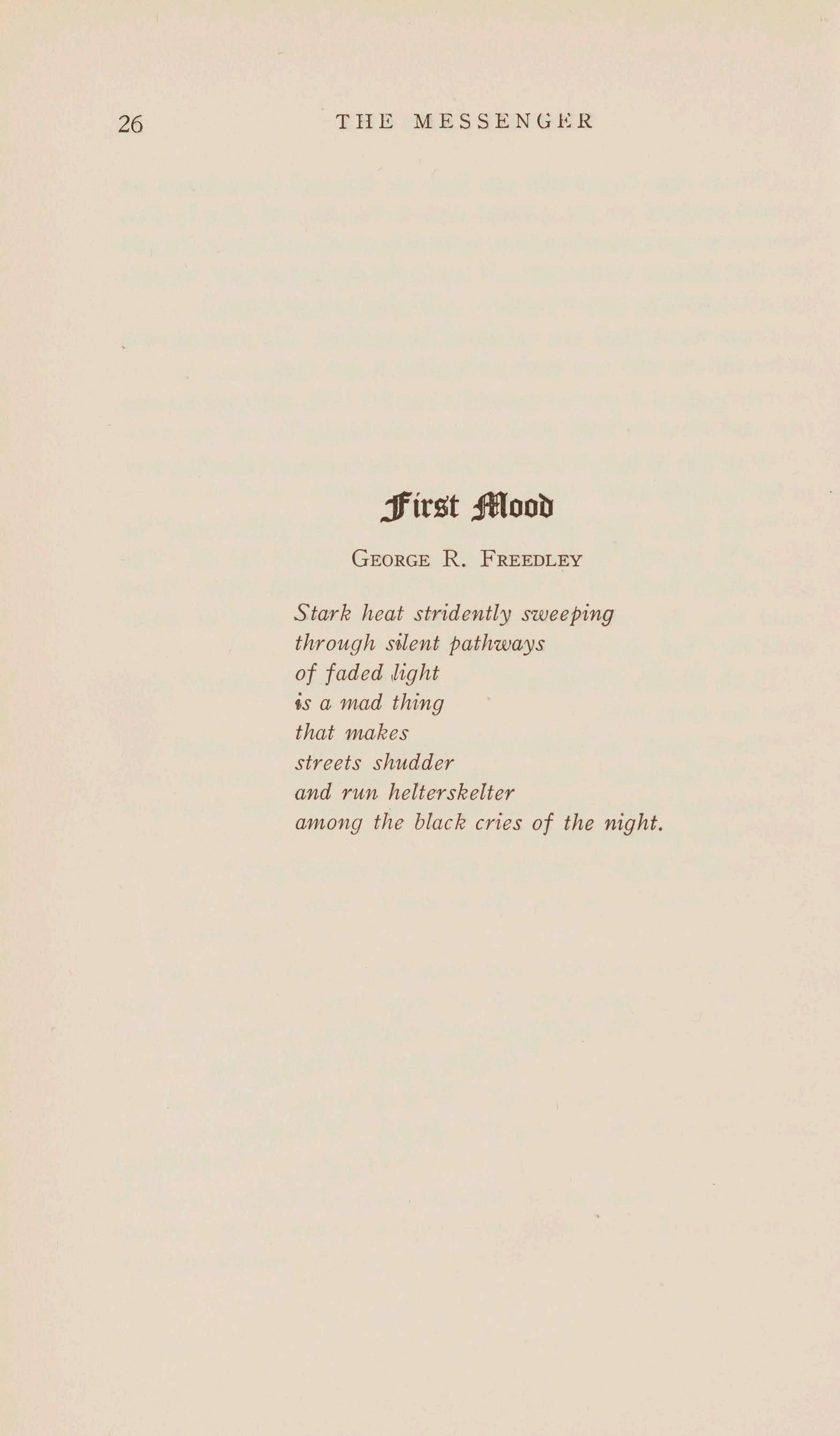 If THE MESSENGERis to continue to be a success, a greater interest must be aroused in literary work. There is an appalling laxity on the part of students as regards literary endeavor. Why such a lack of interest? Is it because some feel it would be of little or no use to write, since there are others who can write much better than they? If this be the attitude of some, now is the time to change it. You never know what you can do until you really put forth an honest effort. You may be able to write as good or better than any of the present contributors. Who knows? Let us find out. Why not at least make an attempt. No harm can result. And if your first contribution isn't accepted, don't get discouraged and quit. Just remember the old saying, "If at first you don't succeed, try, try again."
