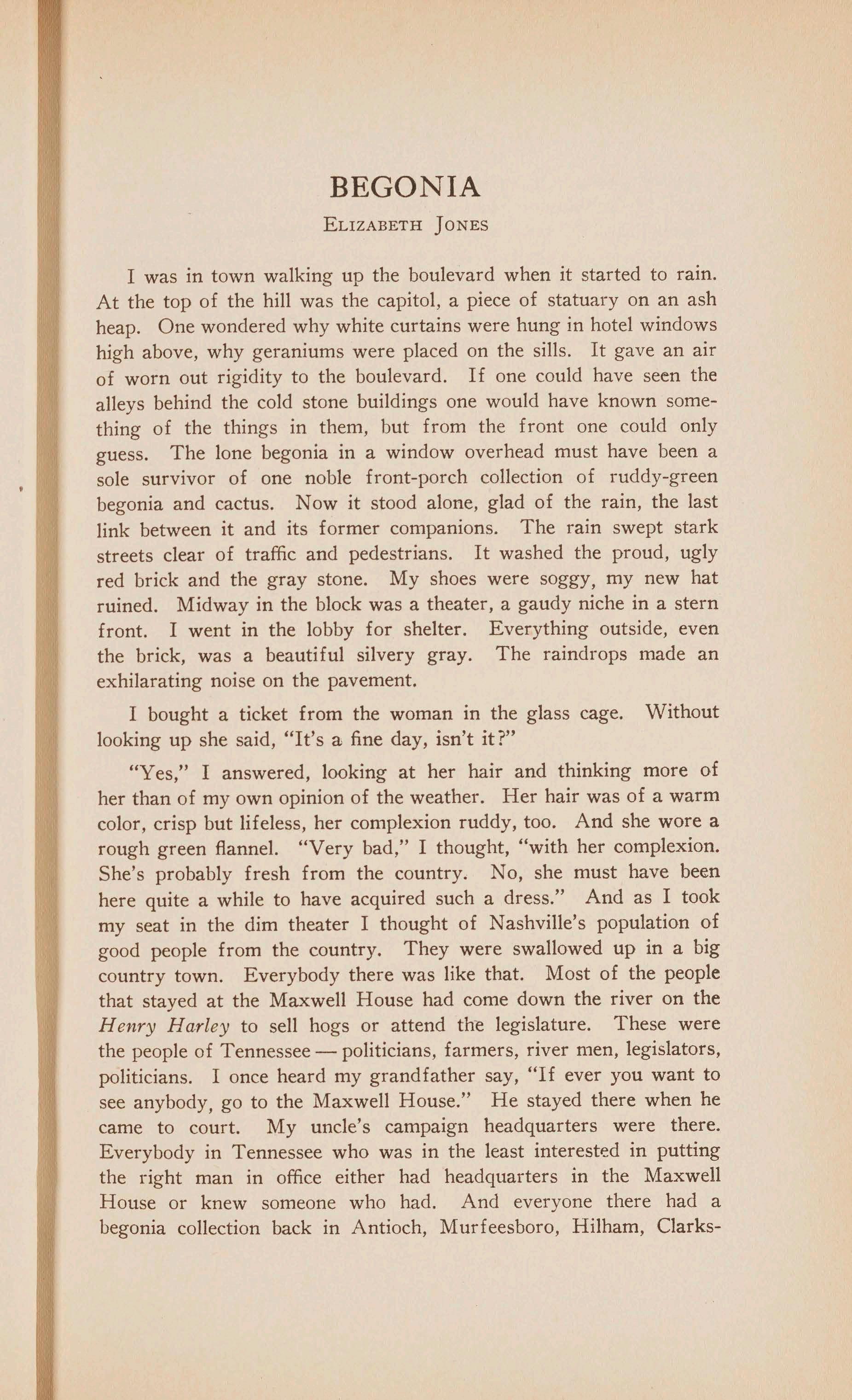 ELIZABETH JONES is a Sophomore at Westhampton College, and this is her first appearance in this magazine . .