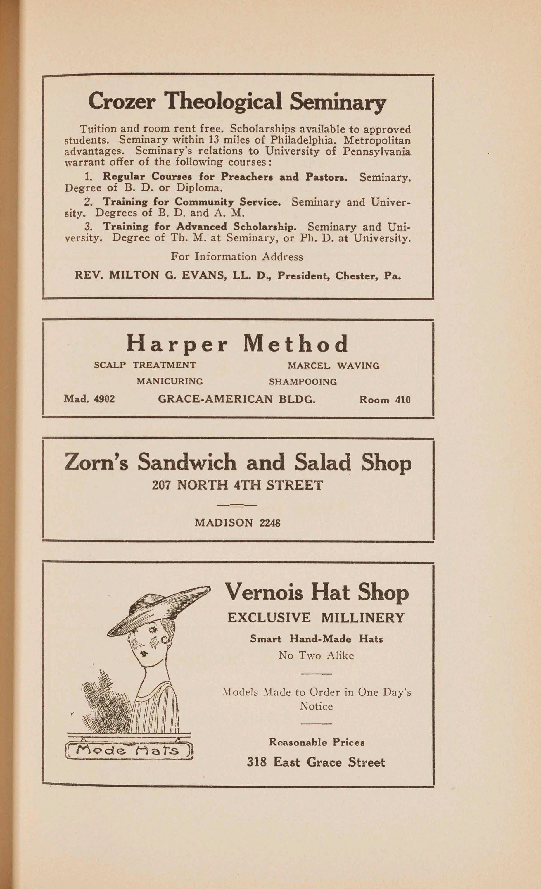 Tuition and room rent free. Scholarships available to approved students. Seminary within 13 miles of Philadelphia. Metropolitan advantages. Seminary's relations to University of Pennsylvania warrant offer of the following courses :