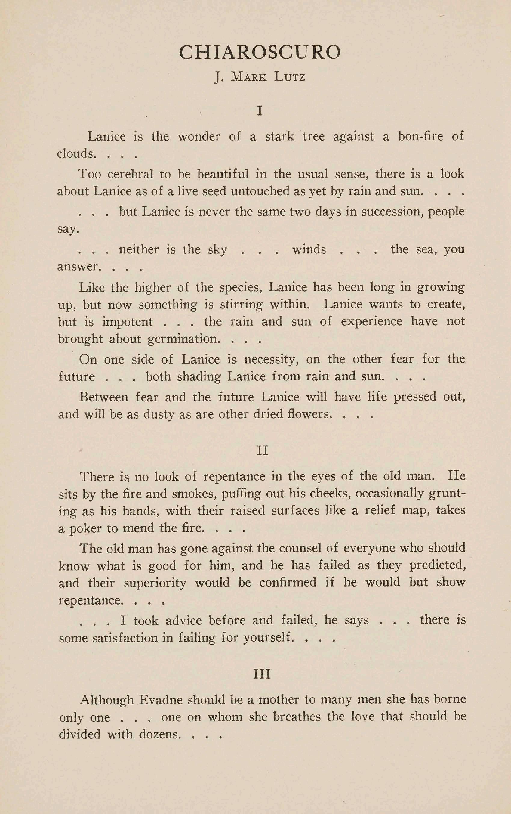 this presents a perplexing problem. They would pref er to set a standard, to make the publication either one thing or the other, either "high brow" or "low." From the very nature of the group who sponsor and finance such a magazine it must be neither one nor the other. Ah, you say, that is a compromise! To the college person there can be nothing more detestable or degrading. But so is a Greek temple a compromise -between heighth and breadth, the straight line and the circle, the shadow and the light. Not that a college magazine has anything to do with a Greek temple.