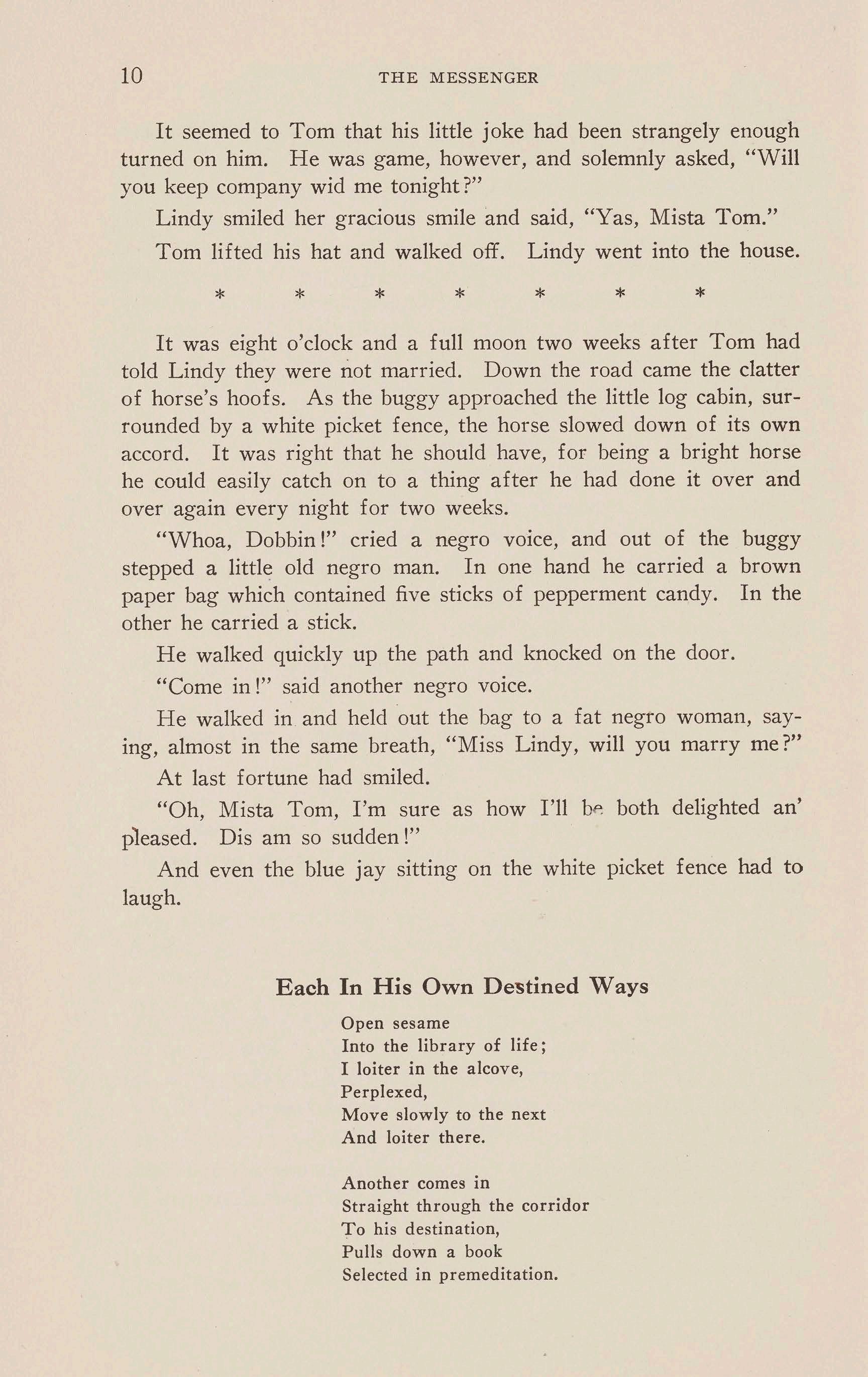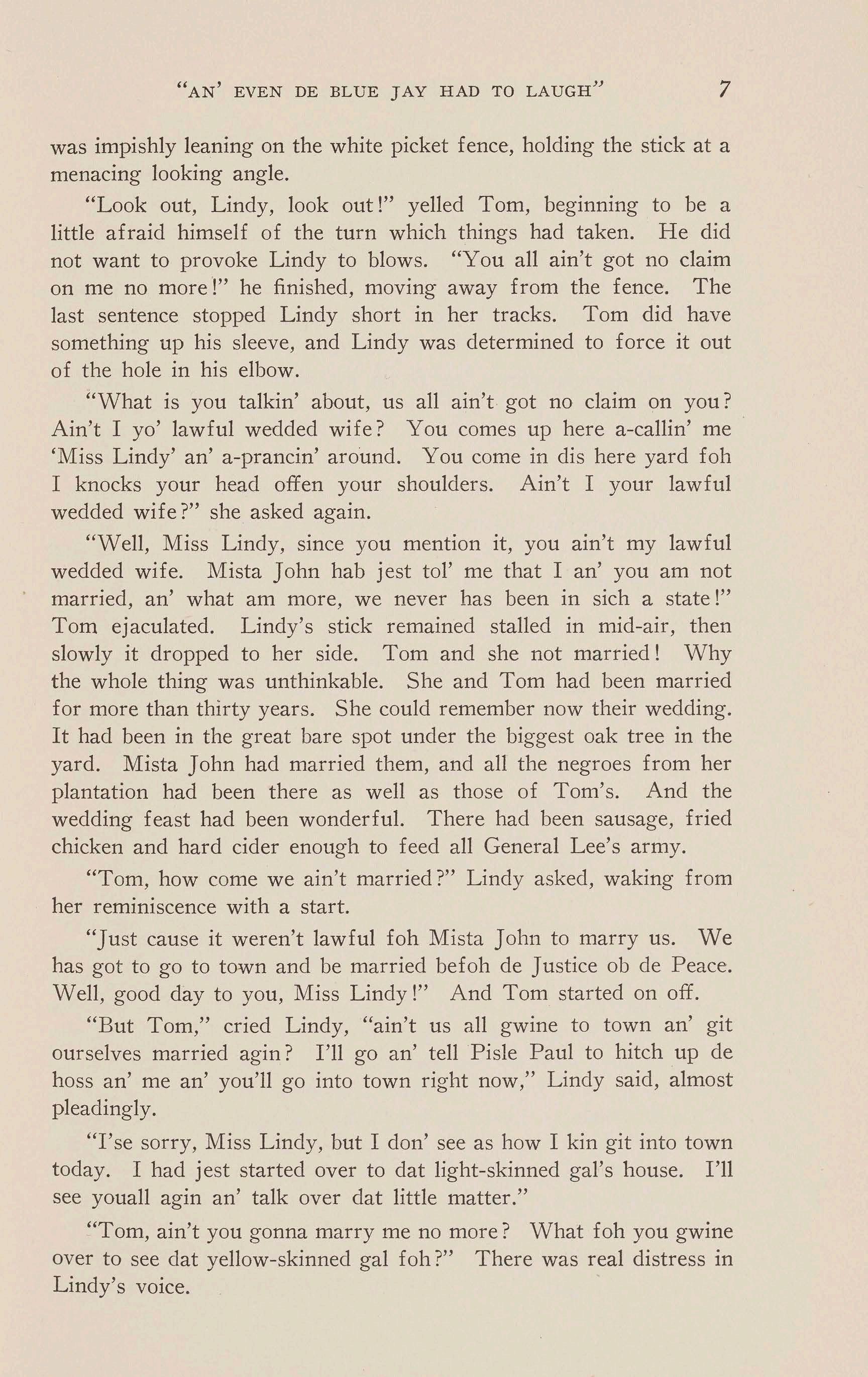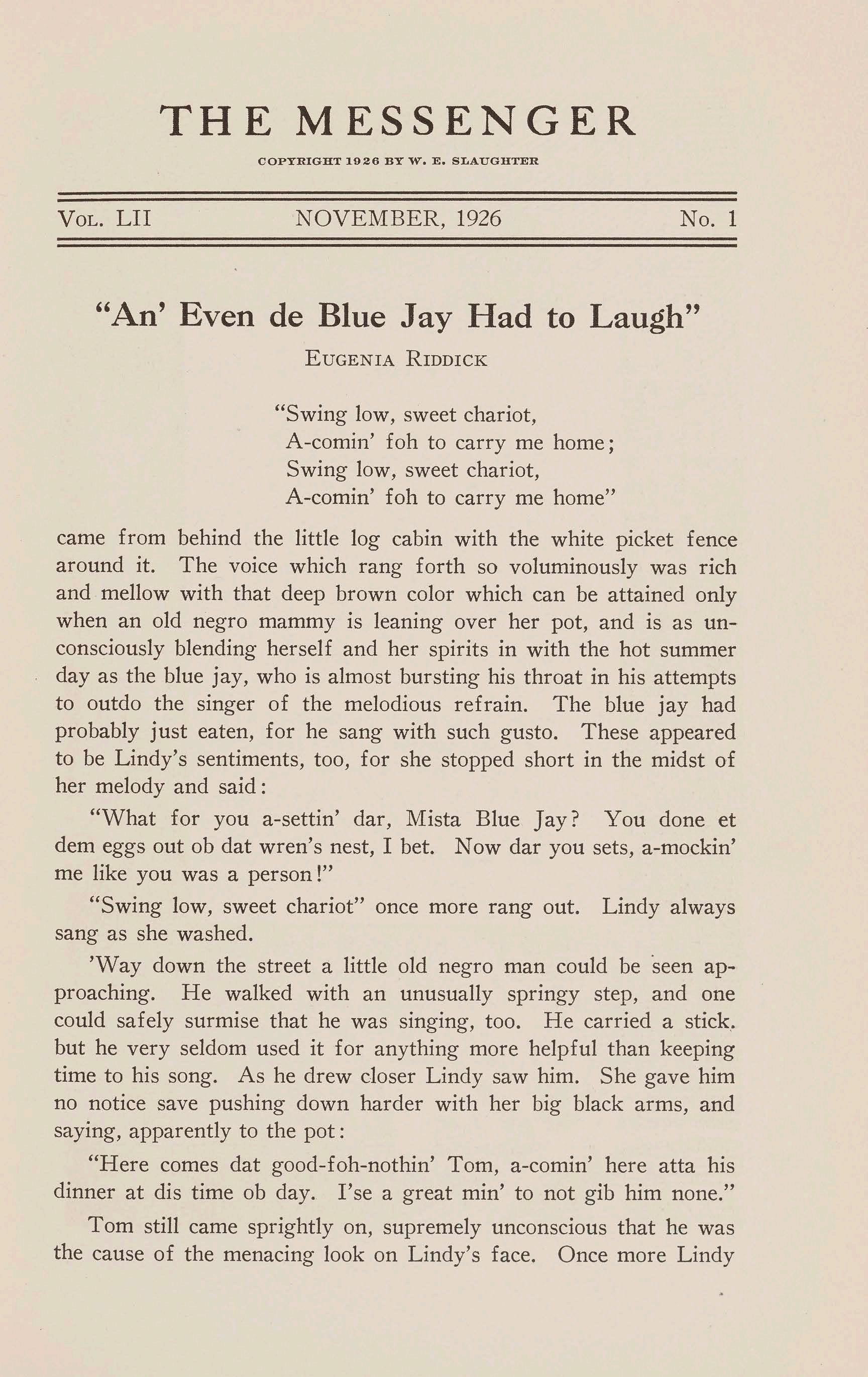 "AN' EvEN DE BLUE JAY HAD TO LAUGH" (Short Story), Eugenia Riddick 5