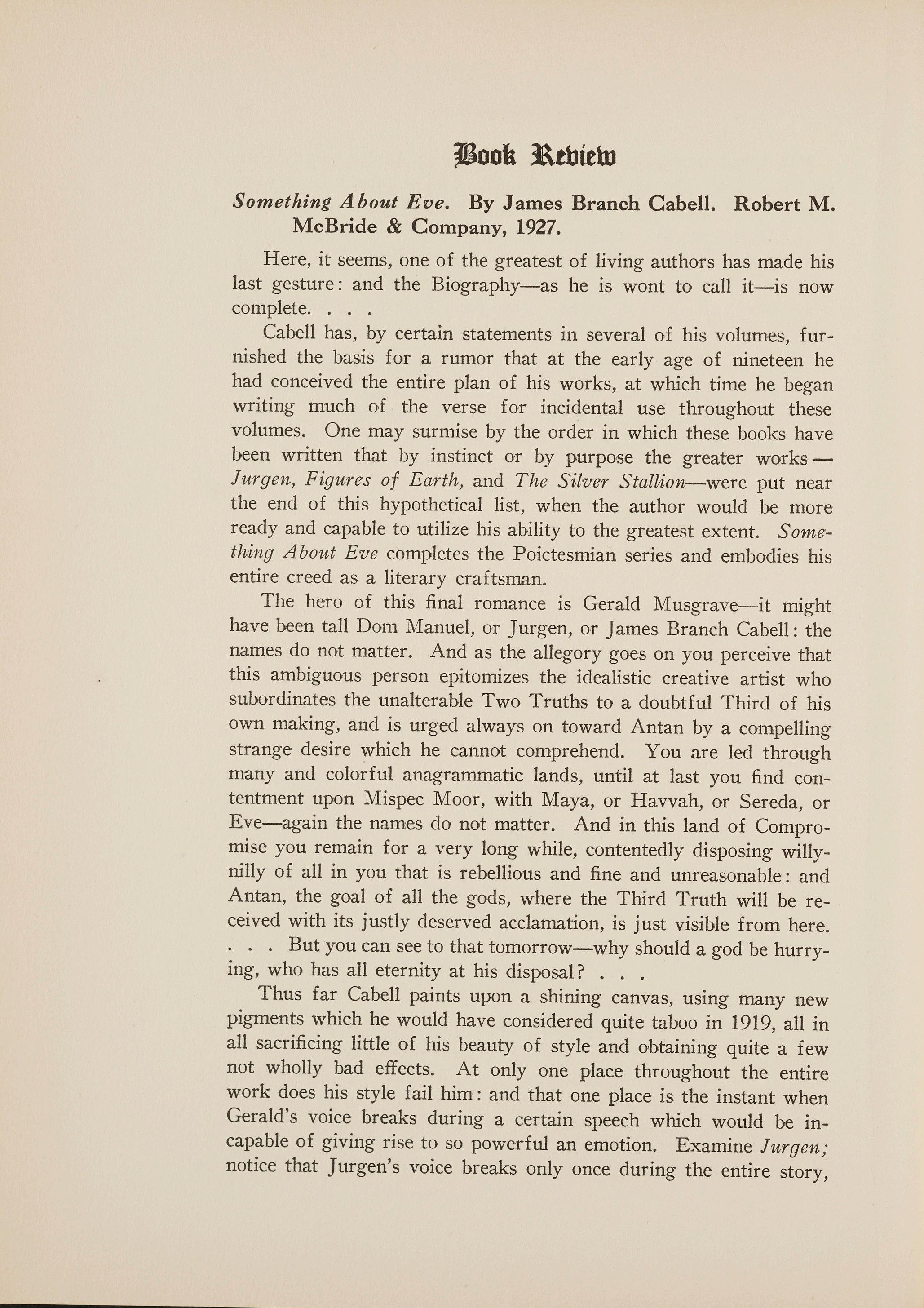 Something About Eve. By James Branch Cabell. Robert M. McBride & Company, 1927.