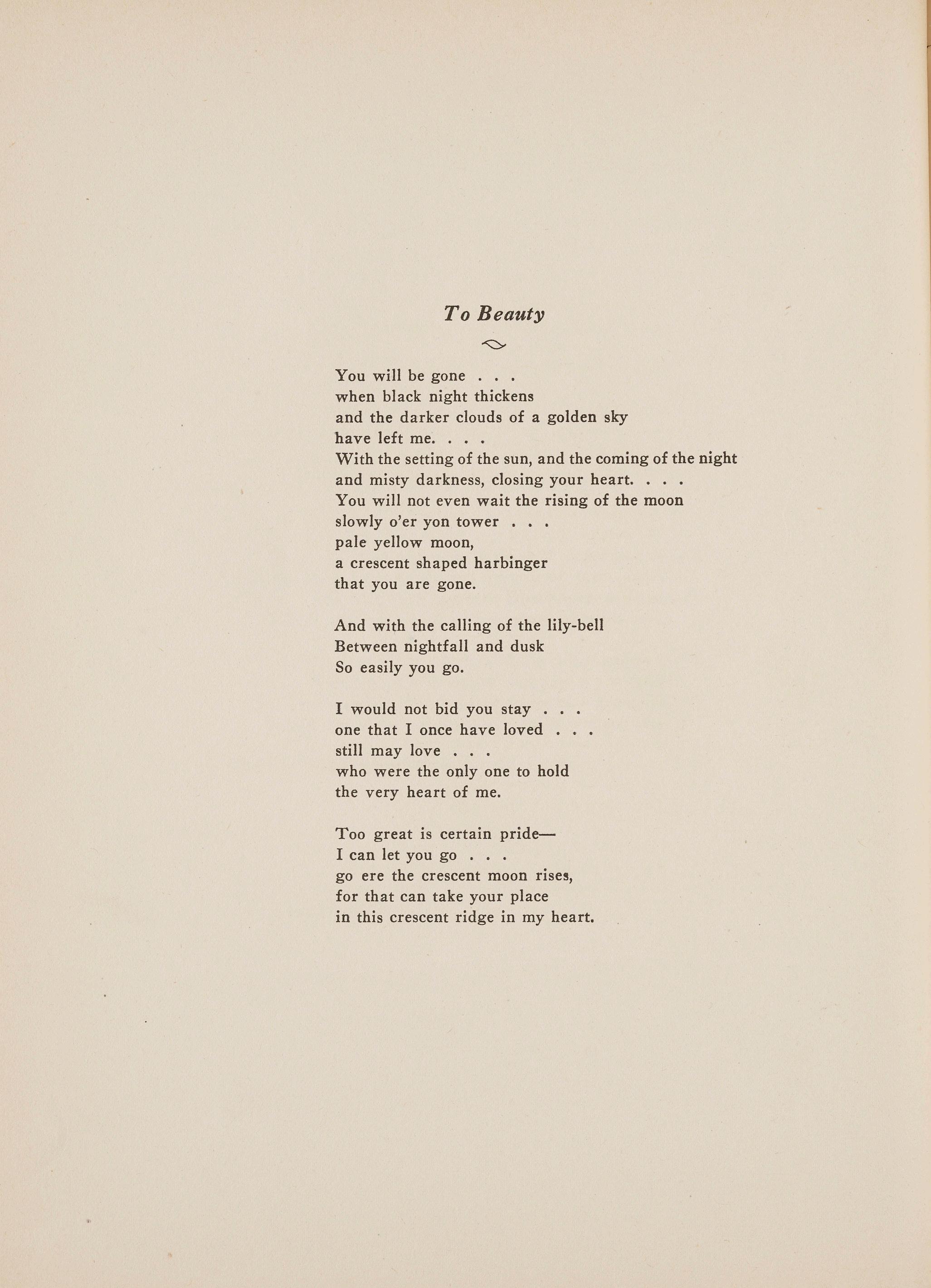 You will be gone when black night thickens and the darker clouds of a golden sky have left me. . . .