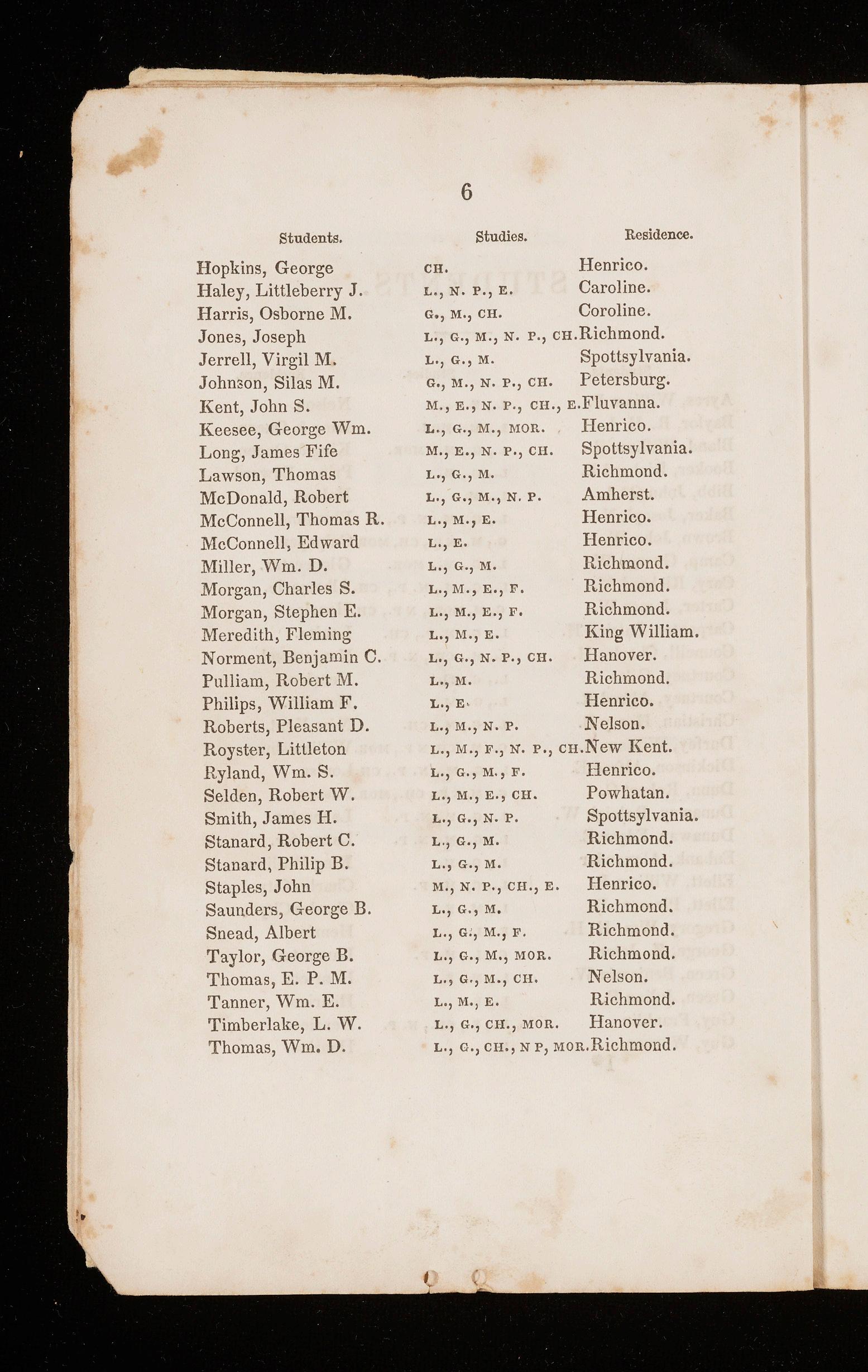 Amherst. Henrico. Henrico. Richmond. Richmond. Richmond. King William. Hanover. Richmond. Henrico. Nelson.