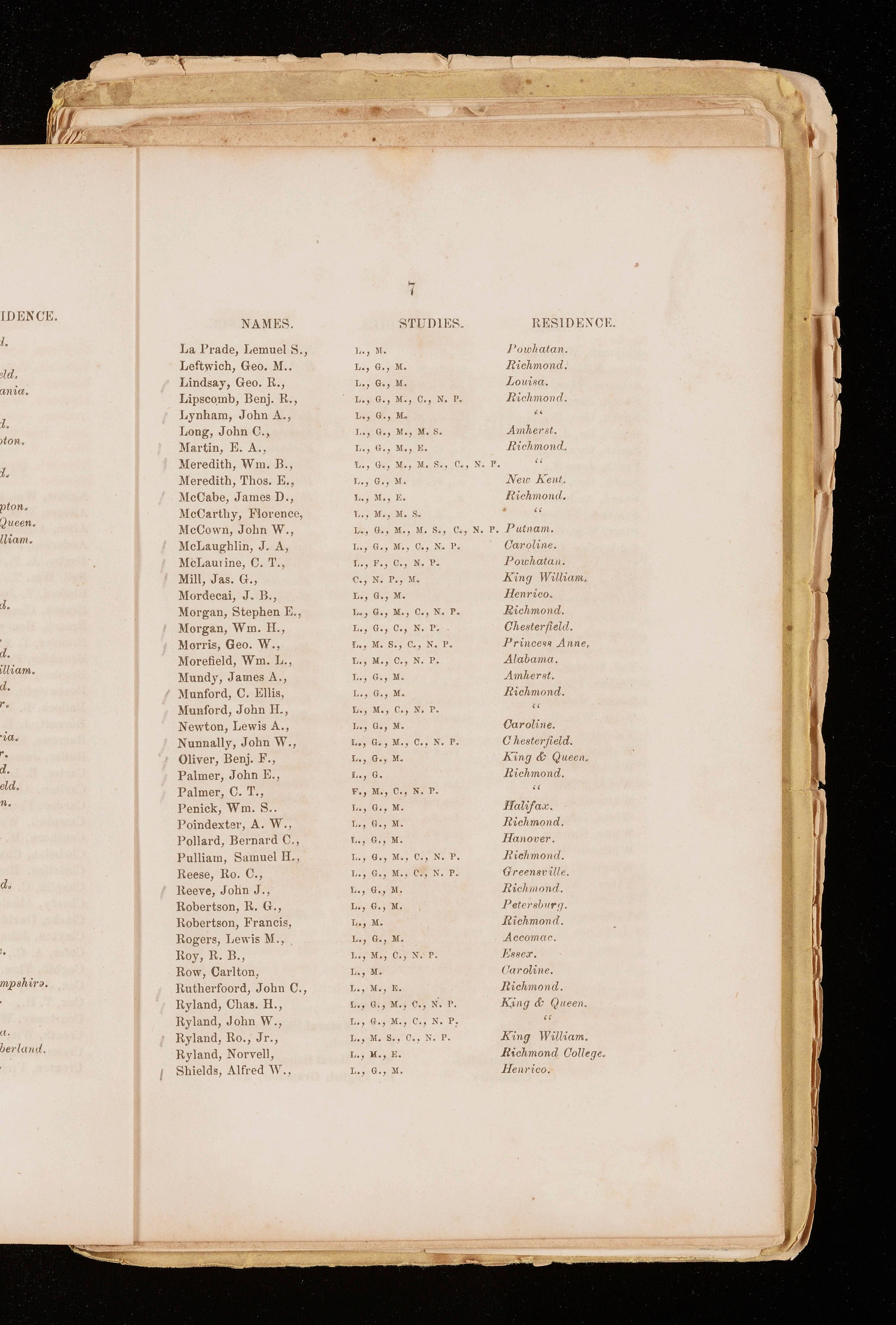 La Prade, Lemuel ti., Leftwich, Geo. M.. Lindsay, Geo. R., Lipsc~mb, Benj. R., Lynham, John A., Long, John C., l\Iartin, E. A., l\Ieredith, Wm. 13., ]l[eredith, 'rhos. E., lllcCabe, James D., McCarthy, :Florence, McCown, John W., McLaughlin, J. A, McLaudne, C. T., Mill, Jas. G., l\Iordecai, J.B., Morgan, Stephen E., ~Iorgan, Wm. H., Morris, Geo. W., Morefield, Wm. L., Mundy, James A., Jllunford, C. Ellis, Munford, ,John IT., Newton, Lewis A., Nunnally, John W., Oliver, Benj. F., Palmer, John E., Palmer, C. T., Penick, Wm. S .. Poindexter, A. W. , Pollard, Bernard C., Pulliam, Samuel II Reese, Ro. C., Reeve, John J., Robertson, R. G., Robertson, Francis, Rogers, Lewis M., Roy, R. B., Row, Carlton, Rutherfoord, J ohu C., Ryland, Chas. II., Ryland, John W., Ryland, Ro., Jr., Ryland, Norvell, Shields, Alfred W