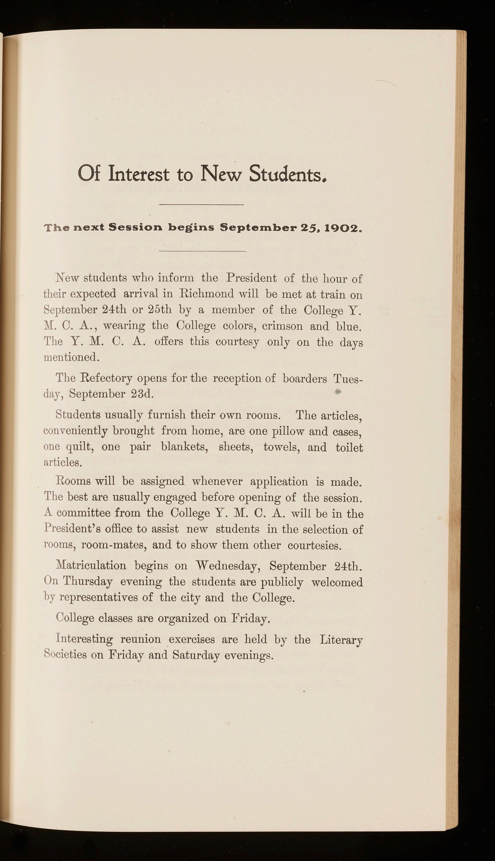 III. The Trustees are interested in academies. At their last meeting it was determined to establish an _Academy Fund. This money, as it comes in, will be invested, and the income will be devoted to the equipme;t of such academies a s stand upon a basis which promises that they will be permanently valuable as preparatory schools to Richmond College. There is a widely-felt need throughout Virginia for secondary schools to fit young men for our College. Money donated for this purpose will be exceedingly serviceable to our educational system.