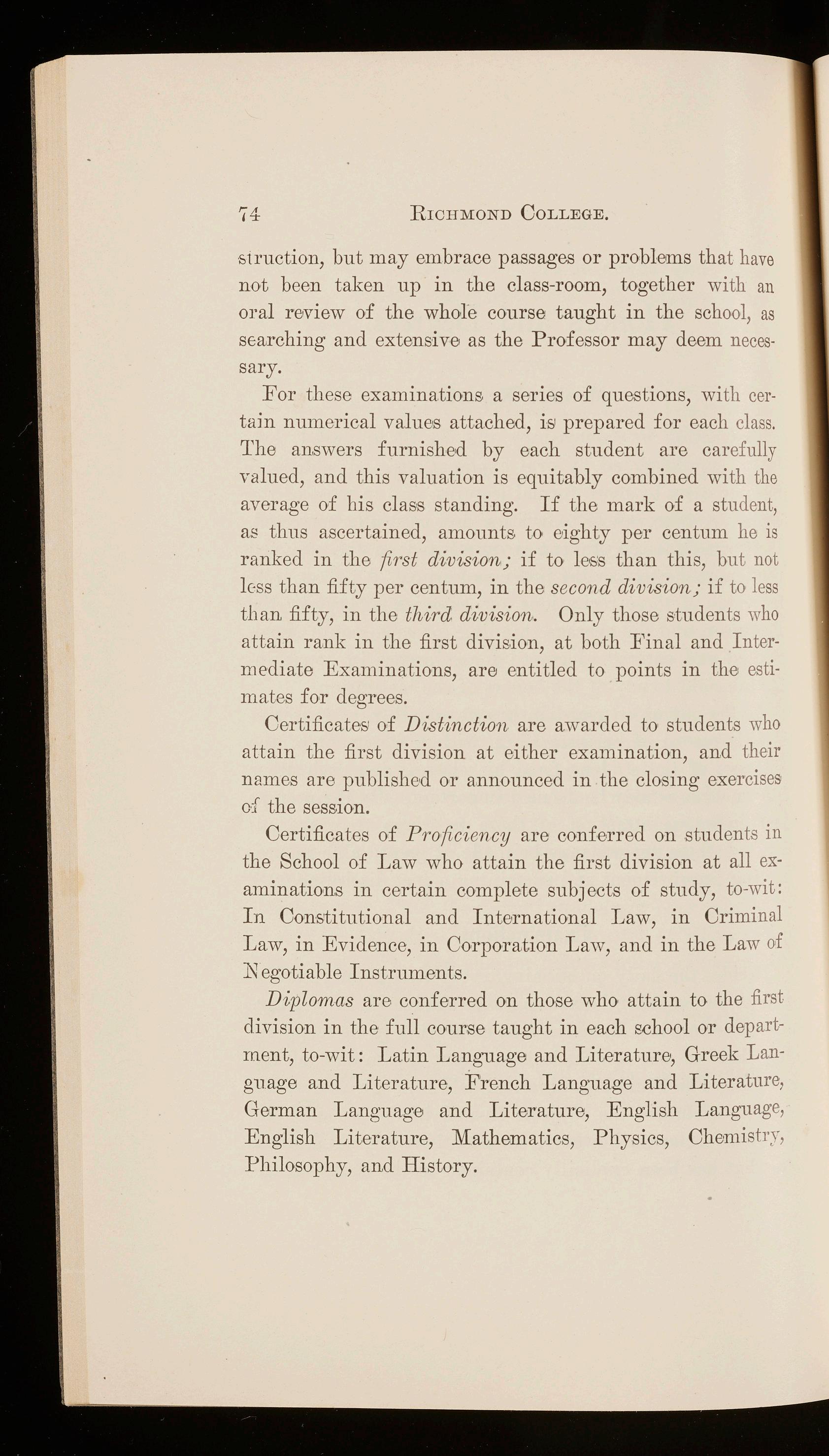 Students who desire to have made out for them such Proficiencies and School Diplomas as they may win, must deposit the necessary fees with the Treasurer one week