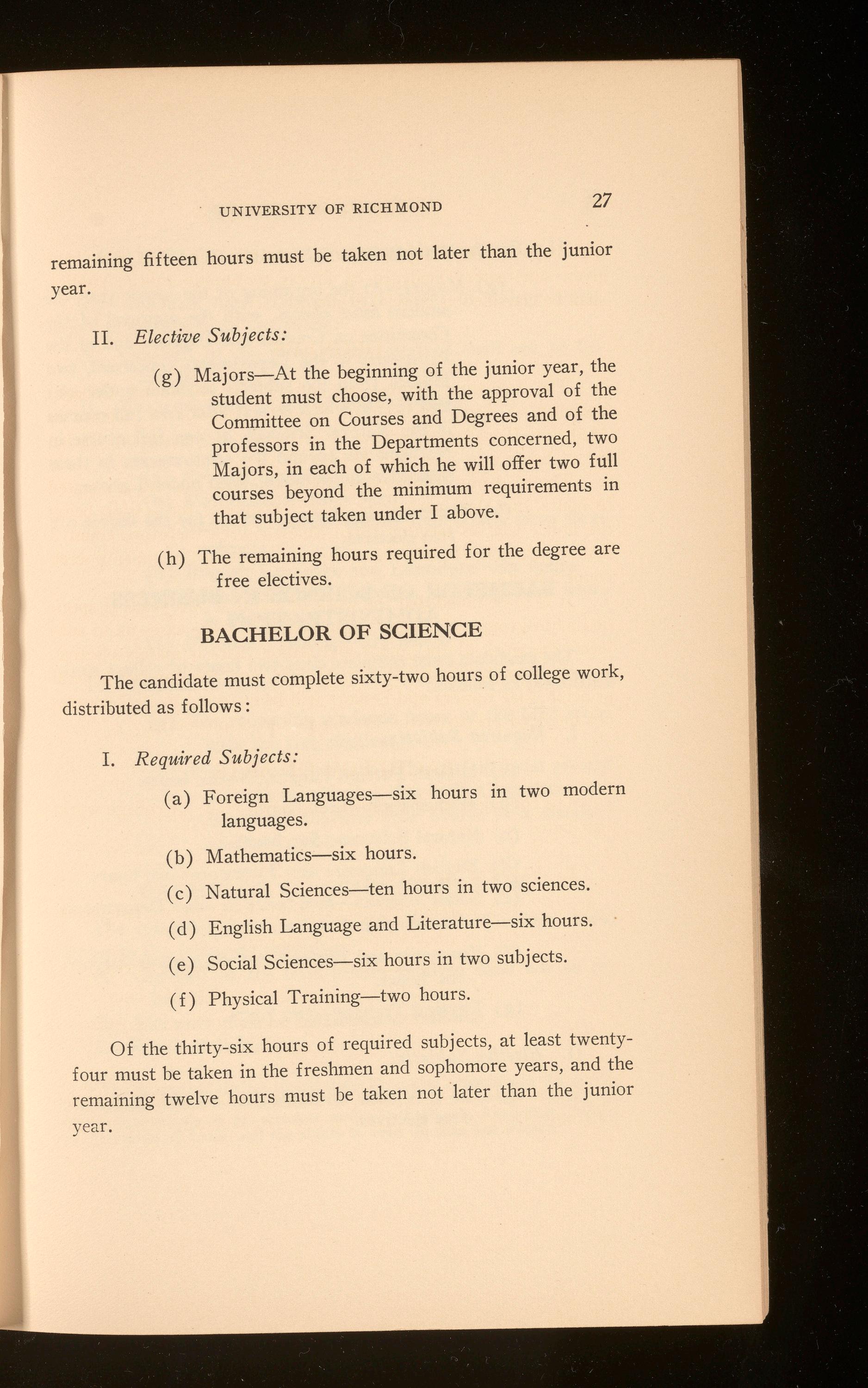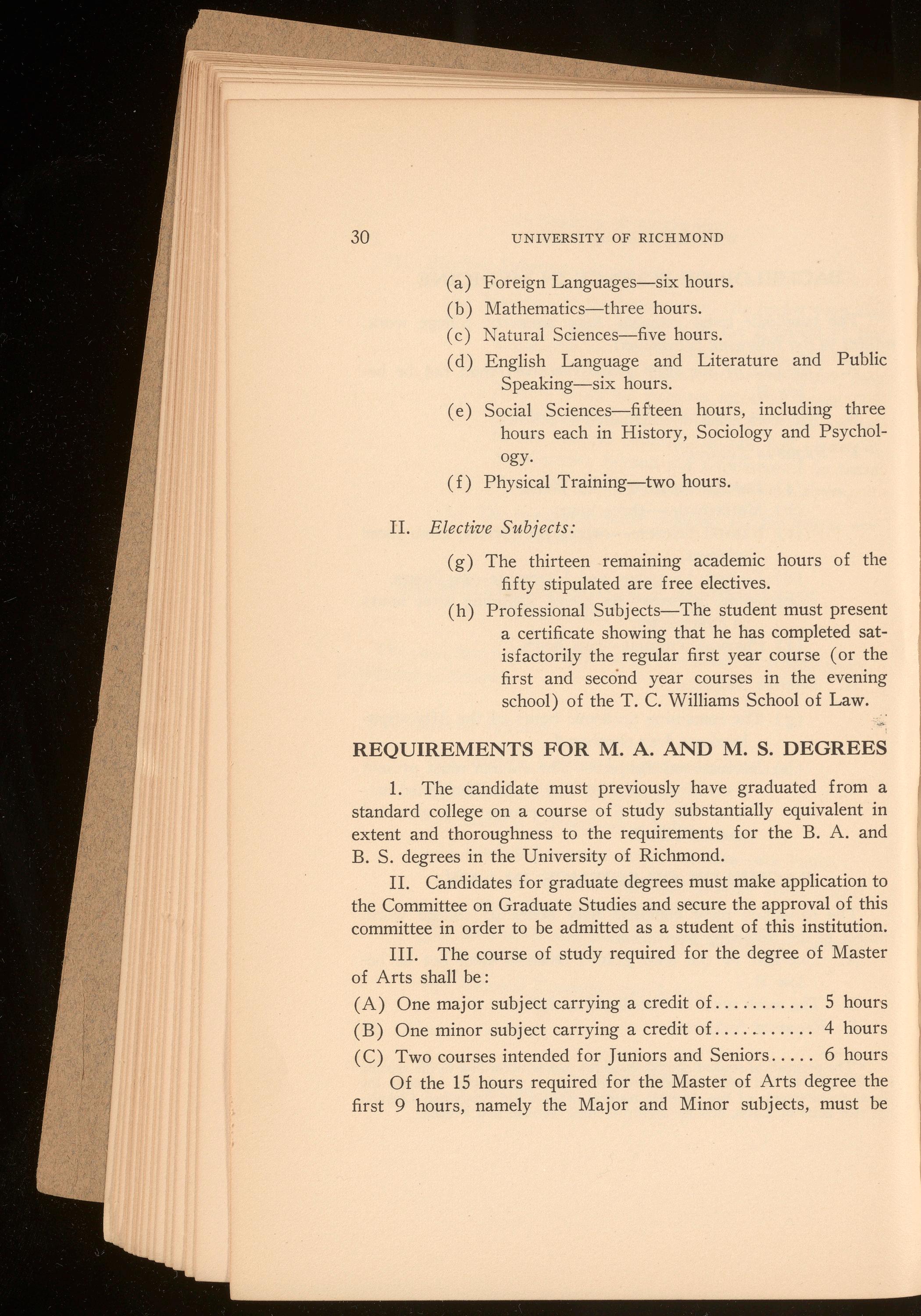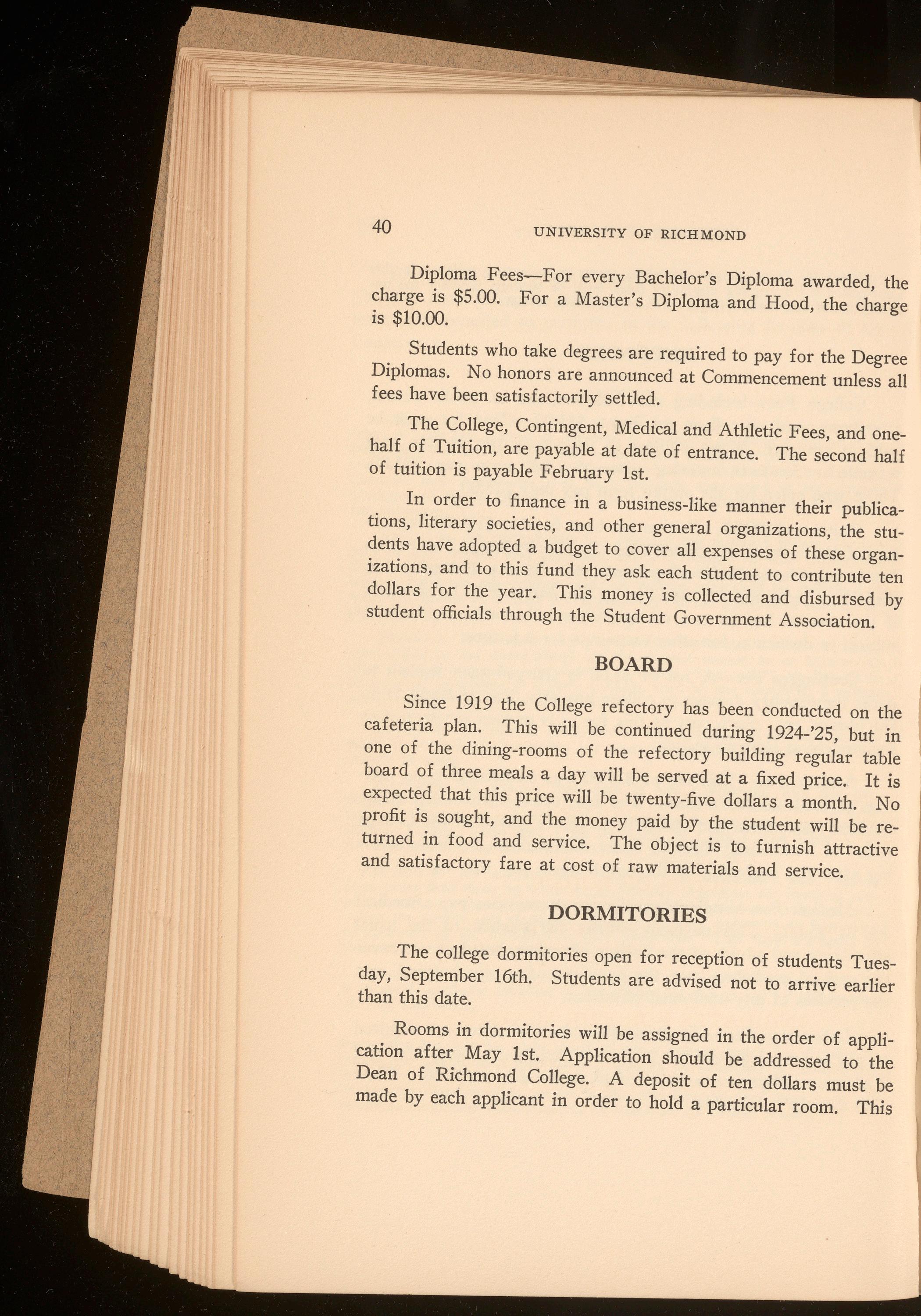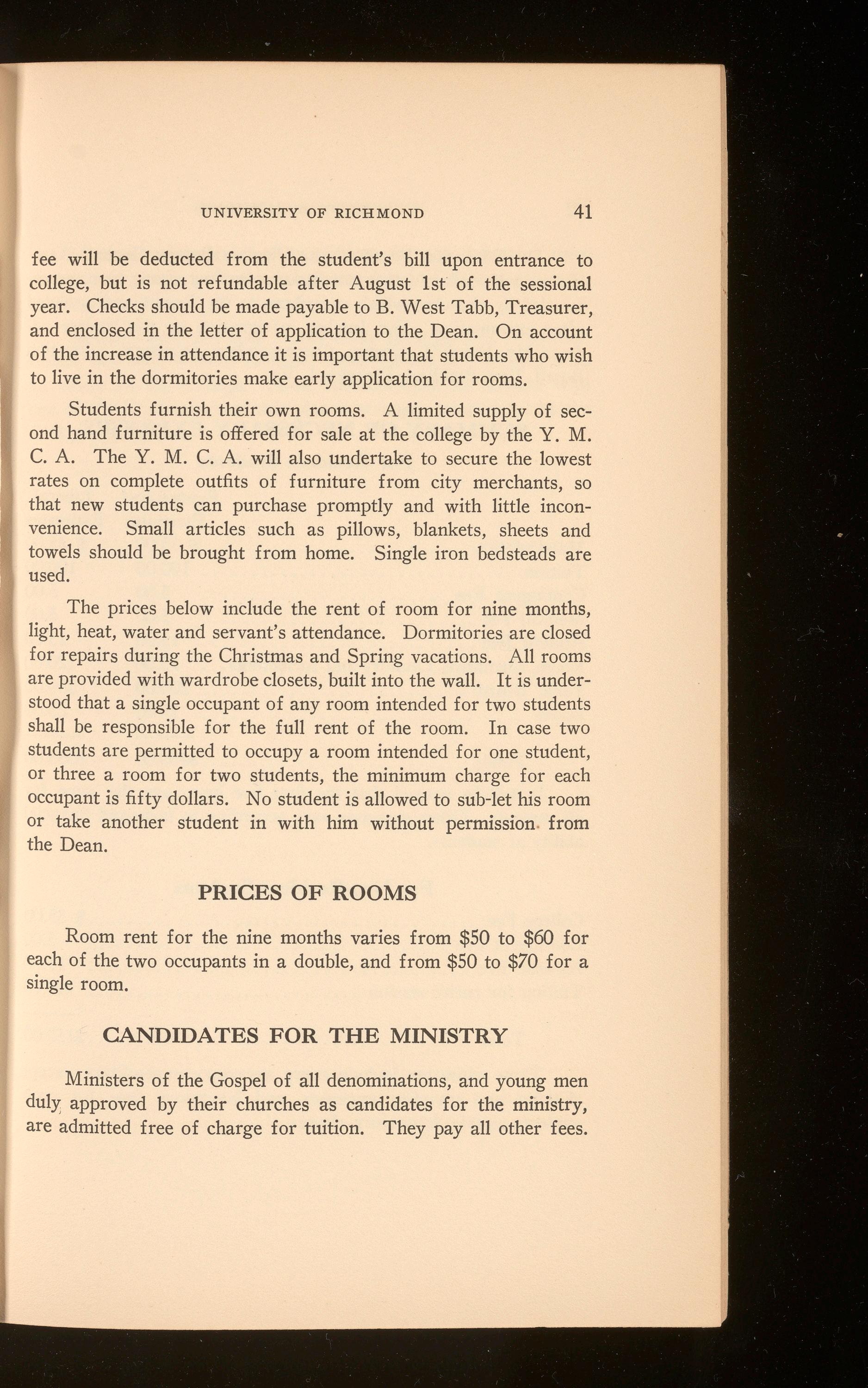 Beginning in 1924-1925 two years of college work will be required of all candidates for the law degree. Special students will be admitted to the School, not to candidacy for the degree, under special regulations. In every case the applicant for admission should communicate with James H. Barnett, Jr., Secretary of the Law School, 601 North Lombardy Street, Richmond, Virginia.