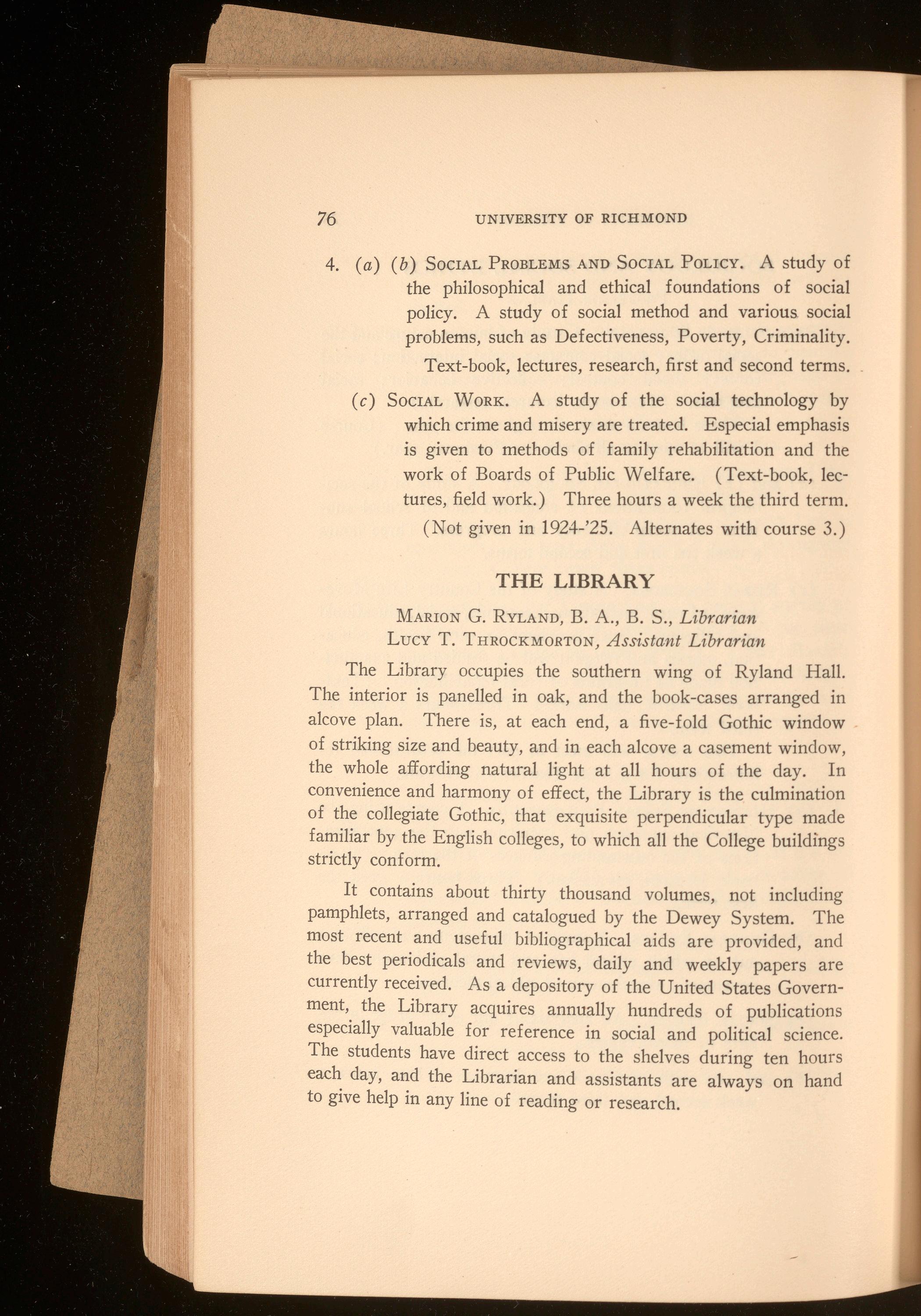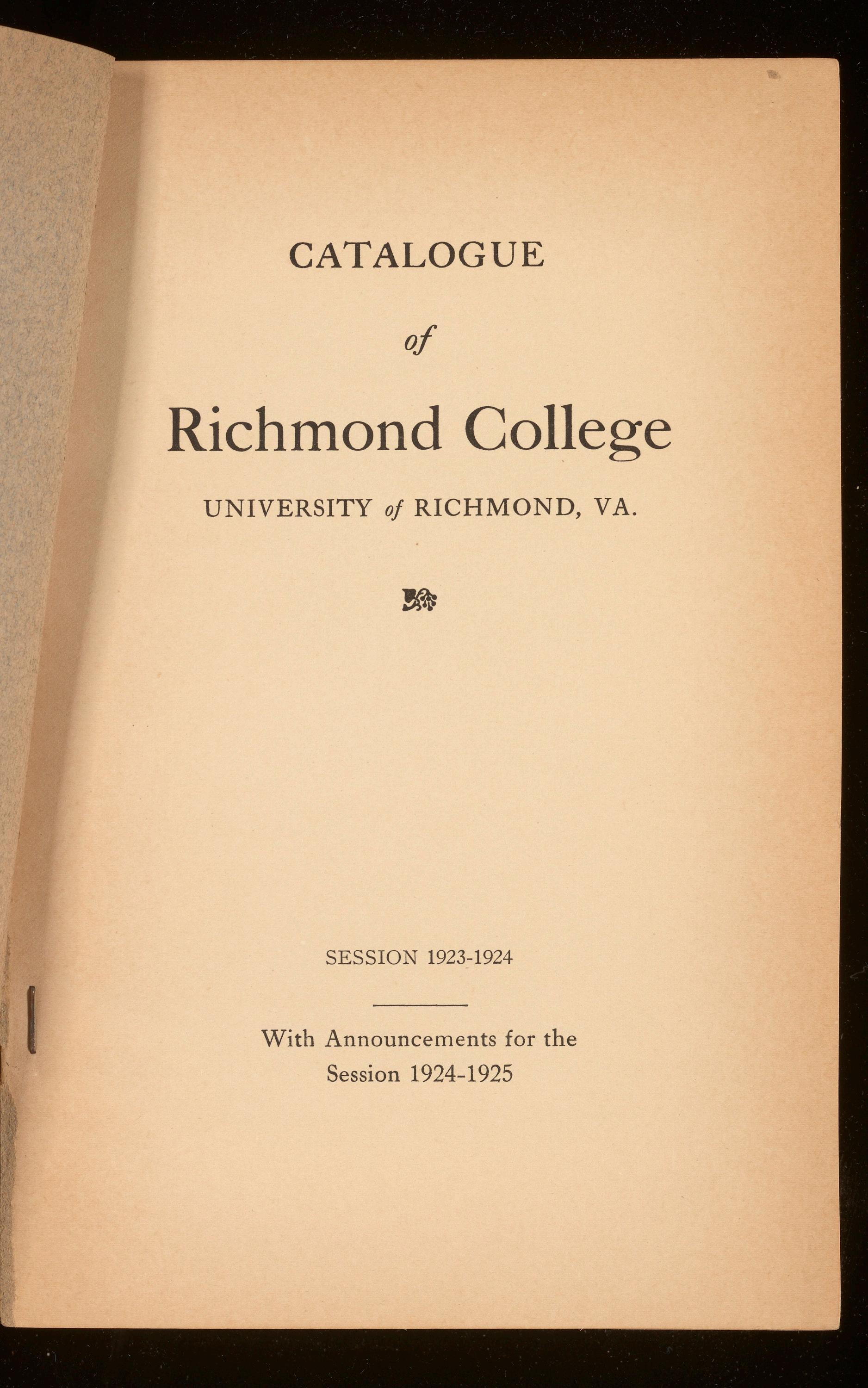 Similar entrance requirements and similar standards apply in Westhampton College and in Richmond College. The next session opens September 18th, 1924. For special catalogue and other information, address