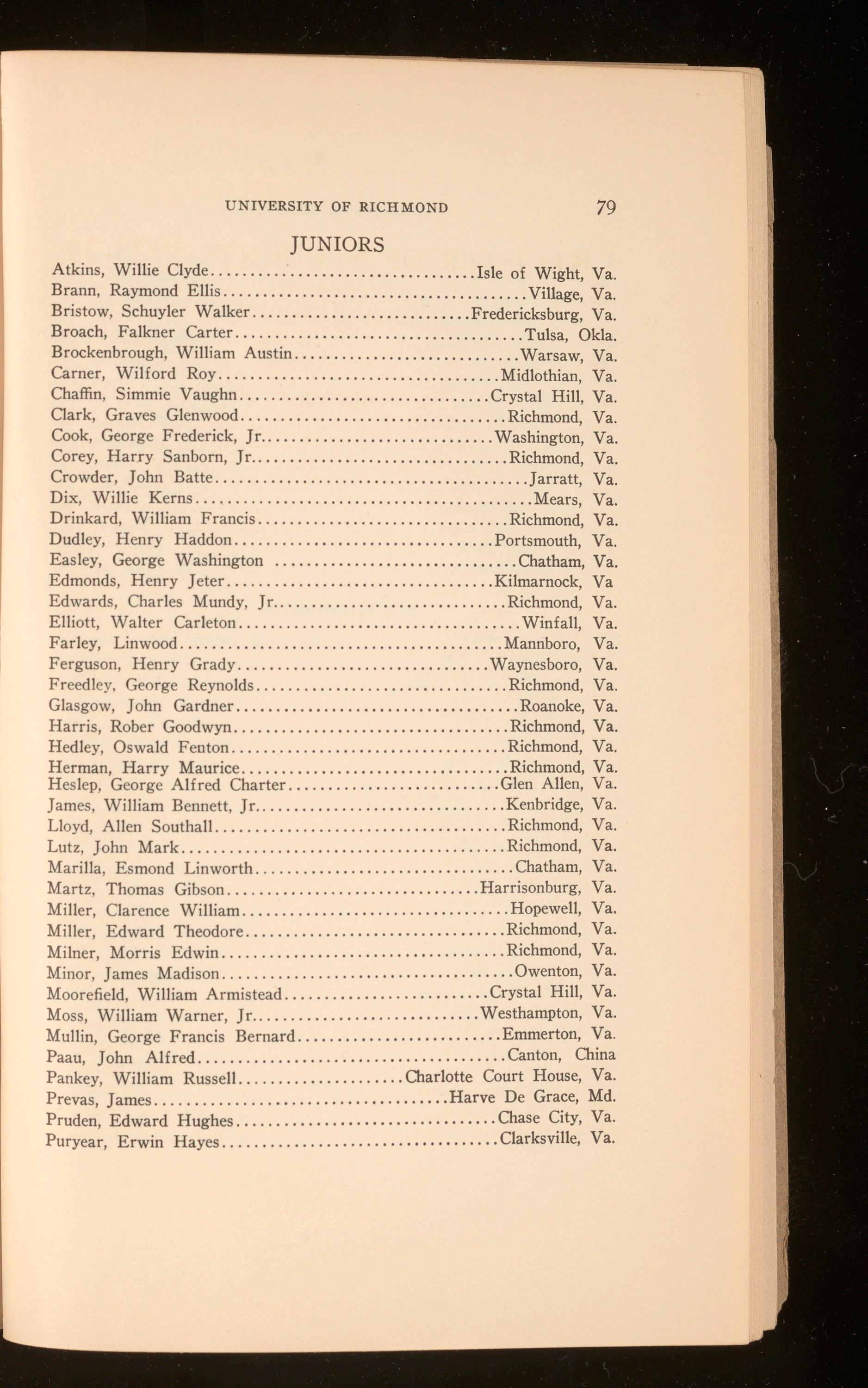 Tunstall, James Monroe, Jr Baskerville, Va. Turner, Eugene Welford .................................. Richmond, Va.