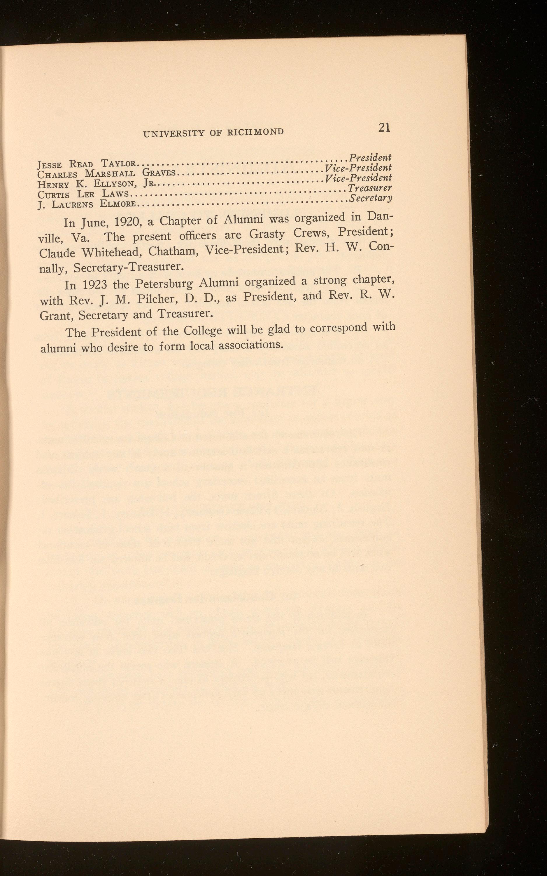 ExECUTIVE.-T. C. Williams, Jr., Thos. B. McAdams, Russell C. Williams, J . L. Camp, R. H. Pitt, B. West Tabb, A. W. Patterson, F. W. Boatwright.