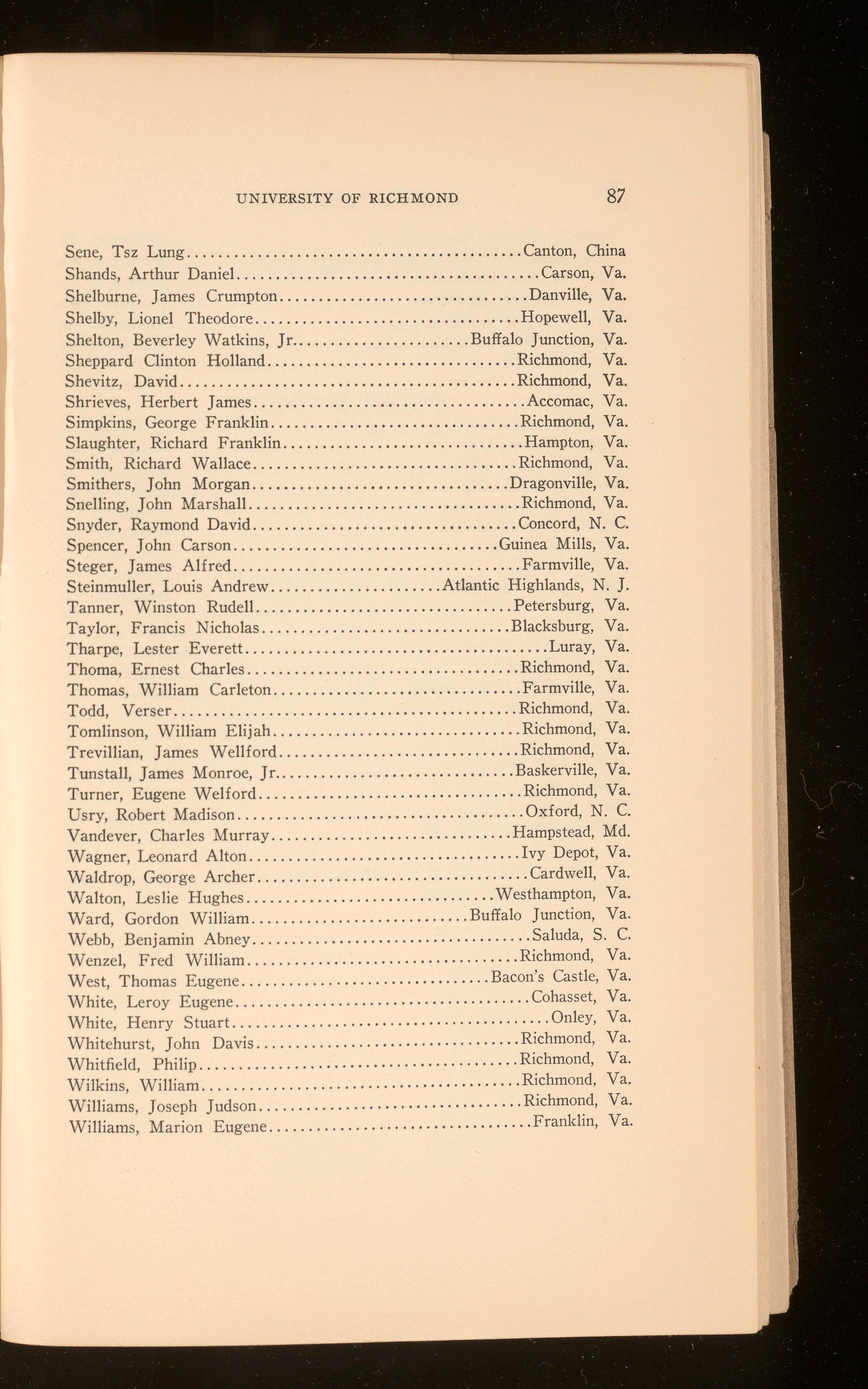 Williams, Joseph Judson .................................. Richmond, Va. Williams, Marion Eugene .................................. Franklin, Va.