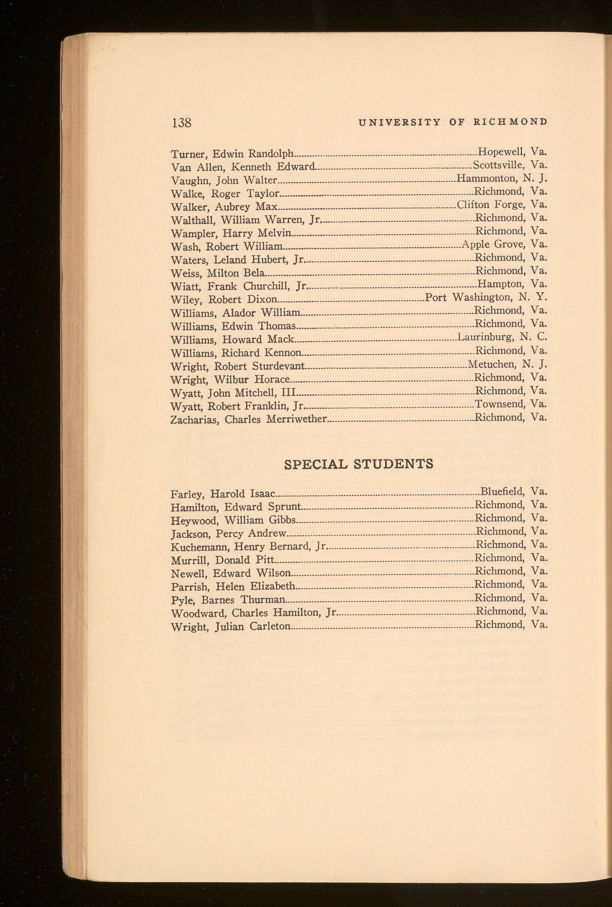 Wright, Julian Carleton . ............. ...........Richmond, Va.