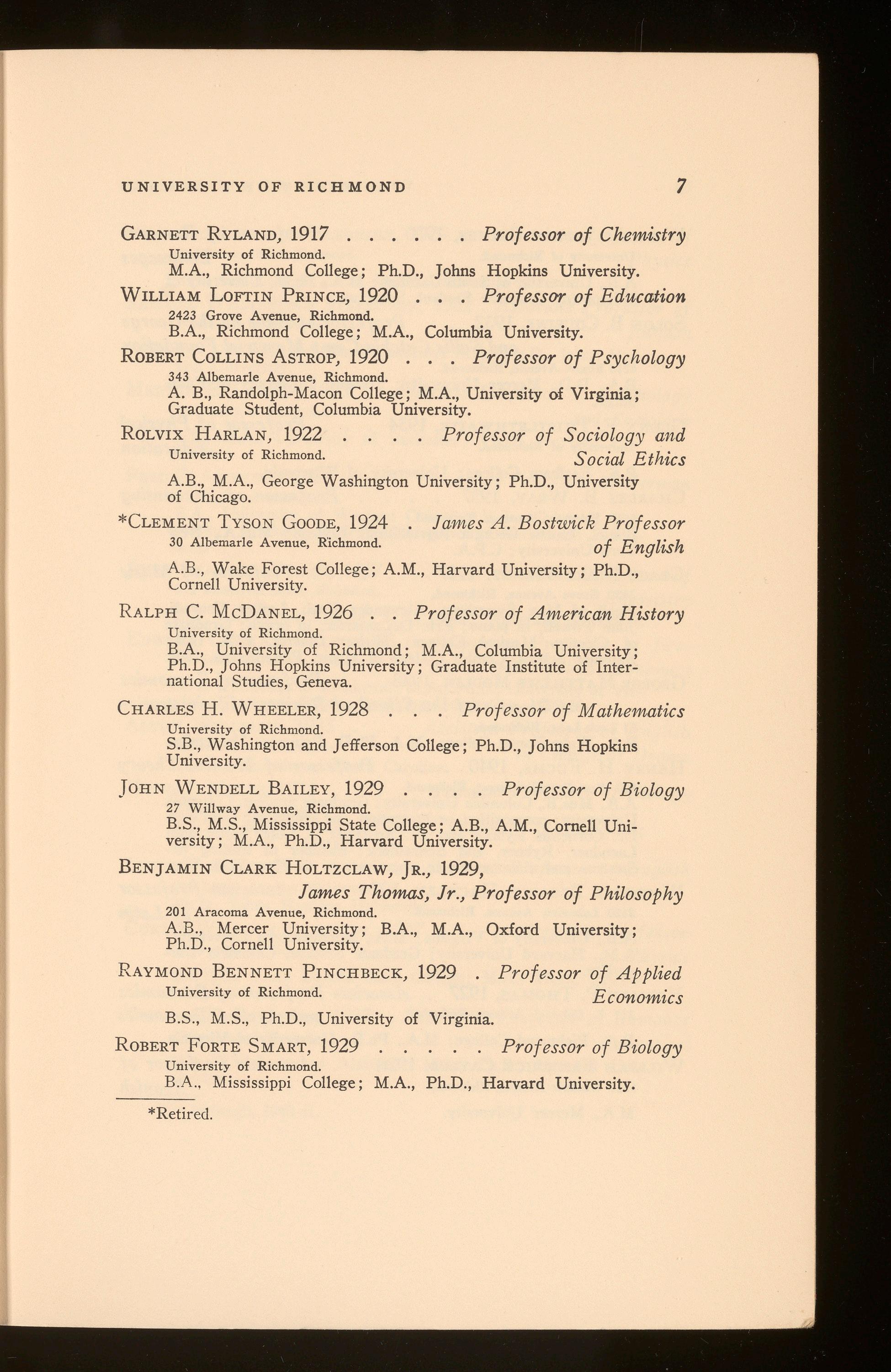 Aid Funds (Scholarships and Donations)-Hunter Miller, Mrs. H. W. Decker, B. P. Willis, Mrs. G. W. McDaniel, E. B. Jackson, Robert N. Pollard, E. B. Sydnor, J. P. McCabe.