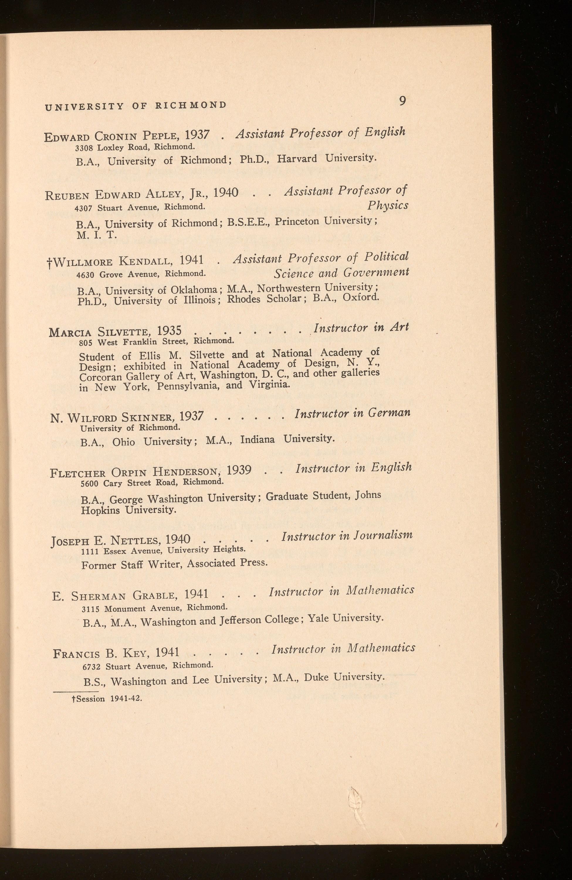 Reid, Leslie Earle ................................................Richmond, Va.