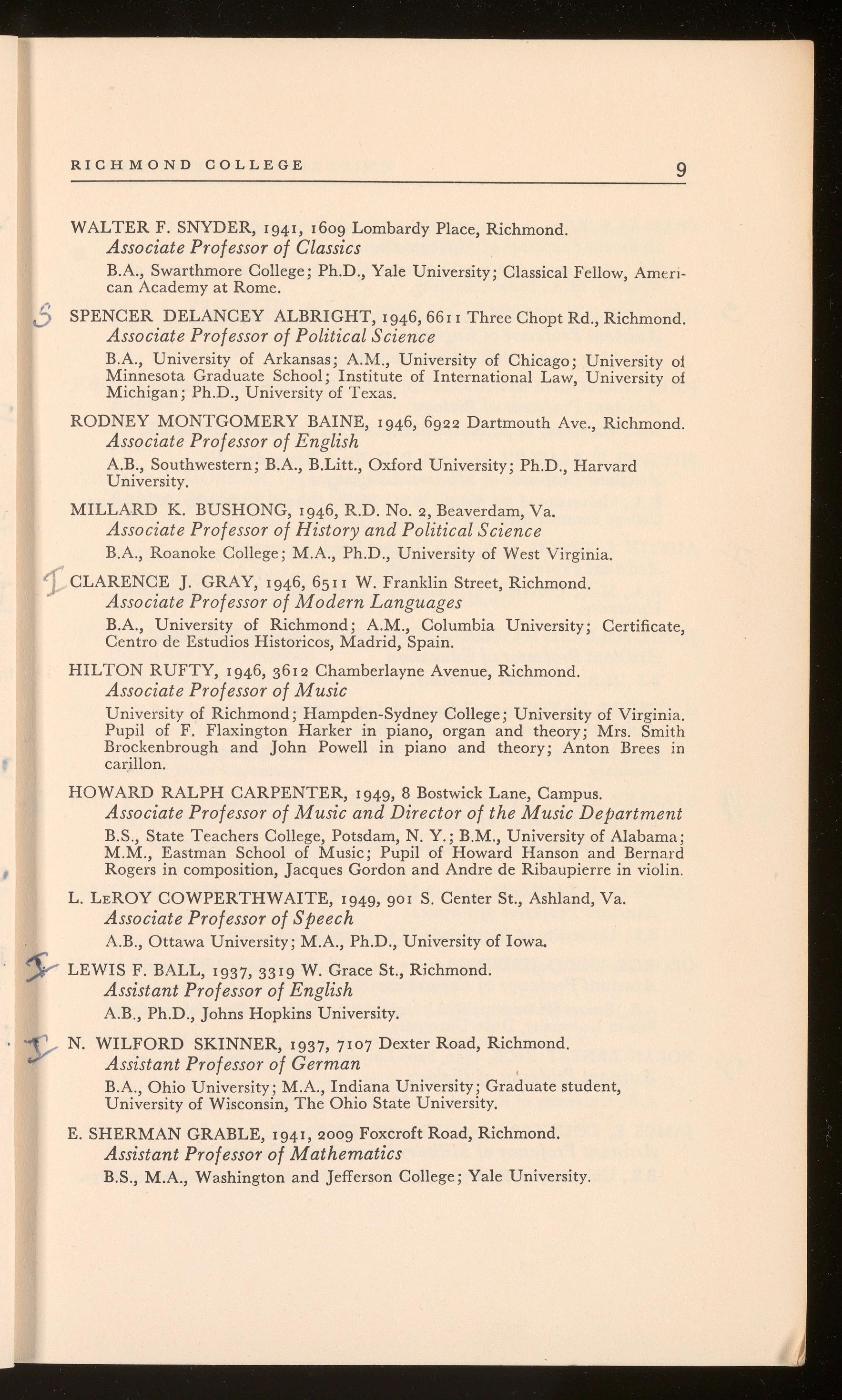 M.A., Richmond College; Ph D , Johns Hopkins University; Graduate Student, Cornell University.