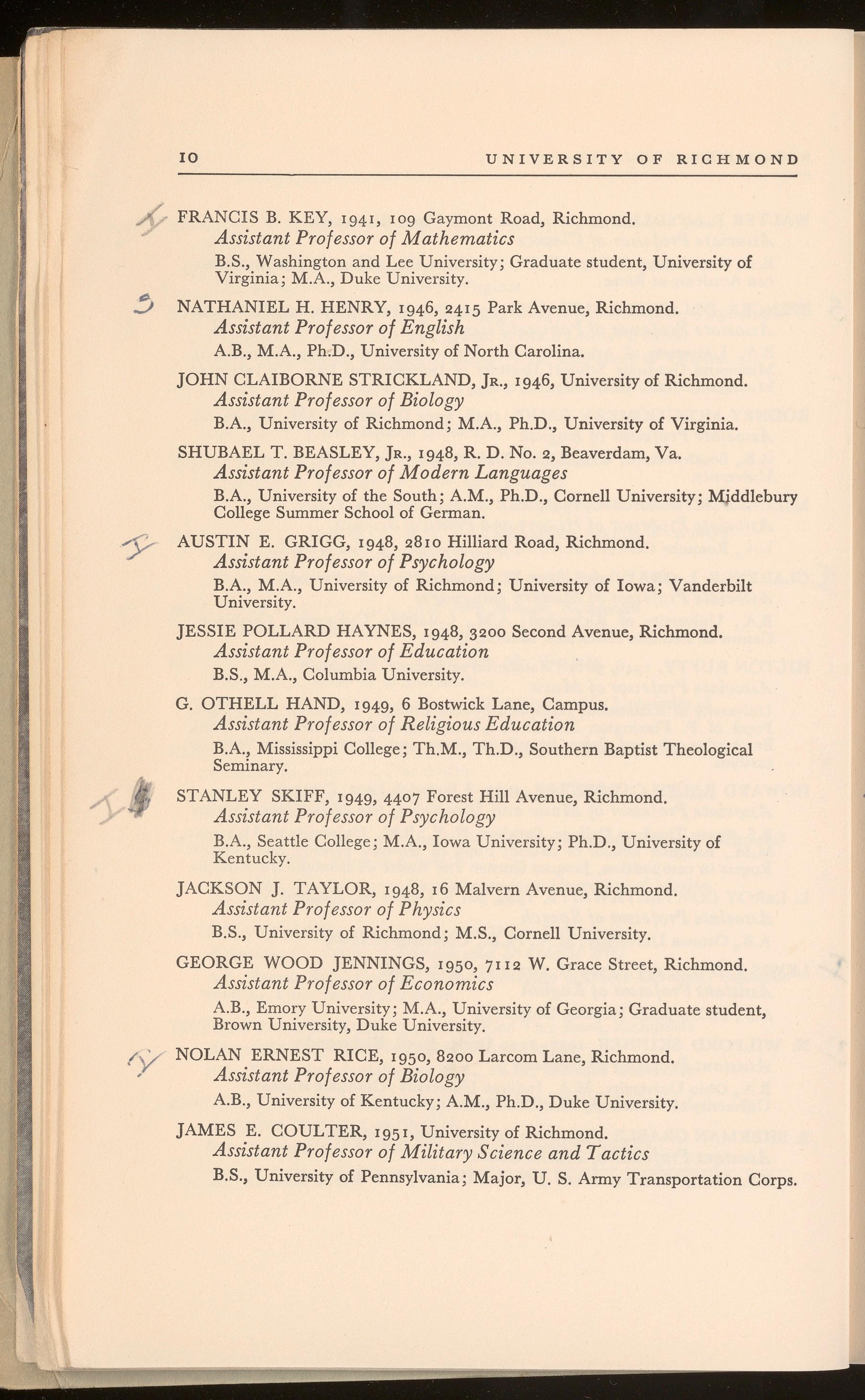 GARNETT RYLAND, 1917, Univ ersity of Richmond. Professor of Chemistry, Emeritus